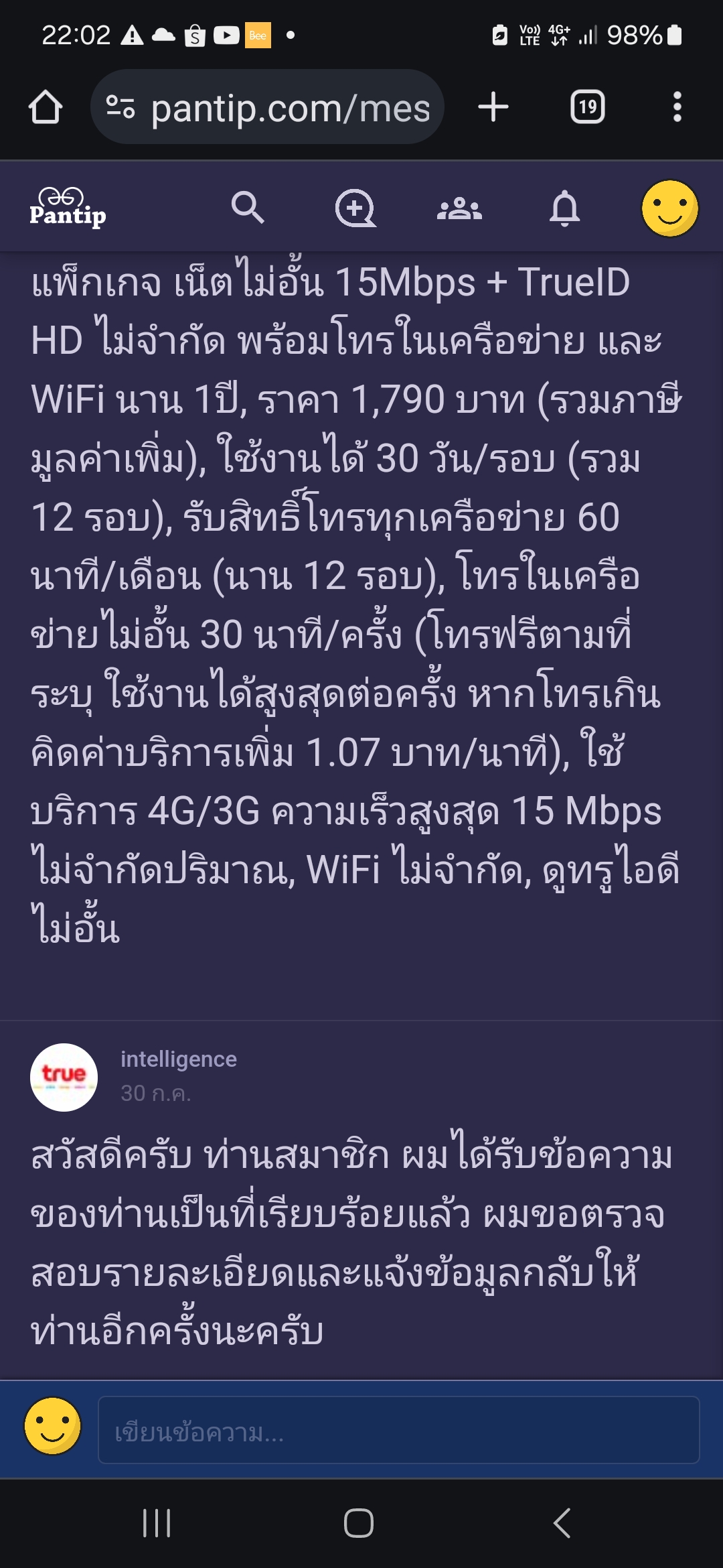 วันนี้มีข้อความเข้ามาในมือถือเกี่ยวกับโปรเน็ต เราก็สนใจ ราคาถูกด้วย จะสอบข้อมูลที่คอลเซนเตอร์แต่โทรไม่ได้คิวเต็ม แต่พอกดสมัครดันไปทบกับแพ็คเกจหลัก เป็นแพคเกจเสร