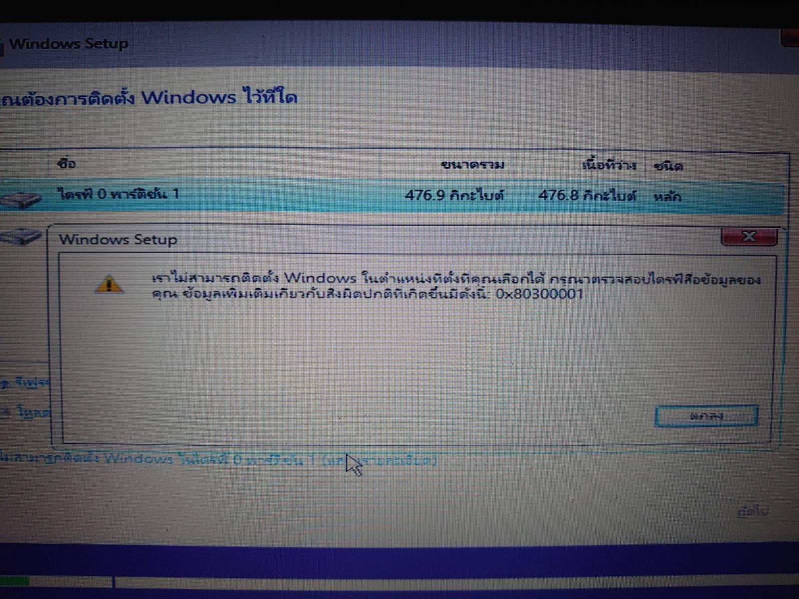 ช่วยด้วยครับ ติดตั้งวินโดว์10ไม่ได้
