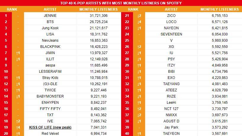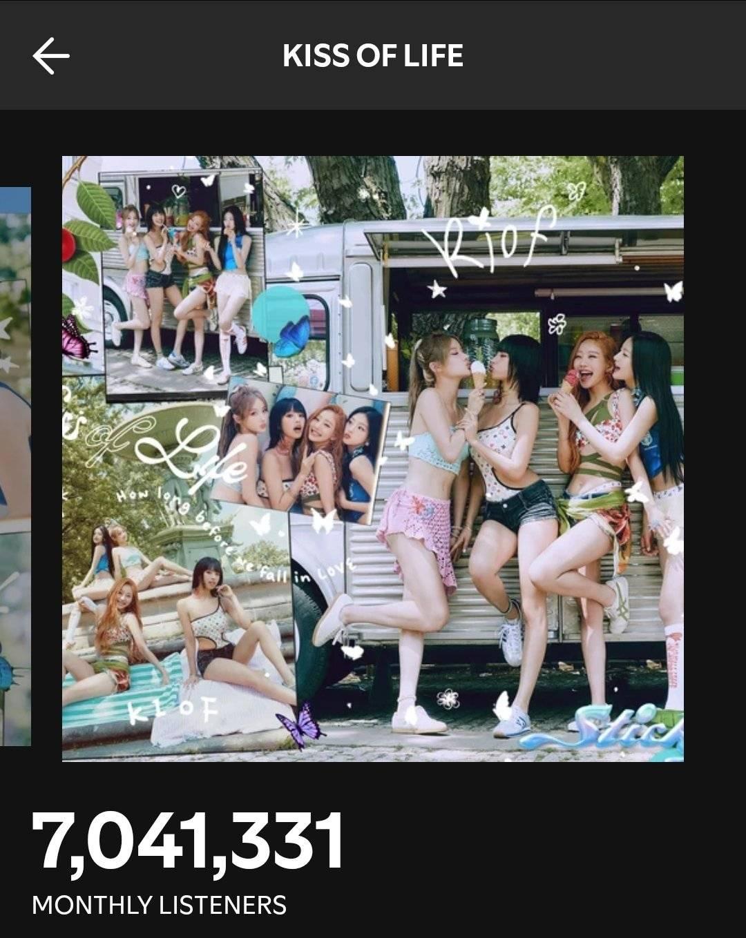 ทำให้ KISS OF LIFE เป็นวงที่3 ของรุ่นที่5 ที่มียอดผู้ฟังรายเดือนทะลุ7ล้าน บน Spotify ✨