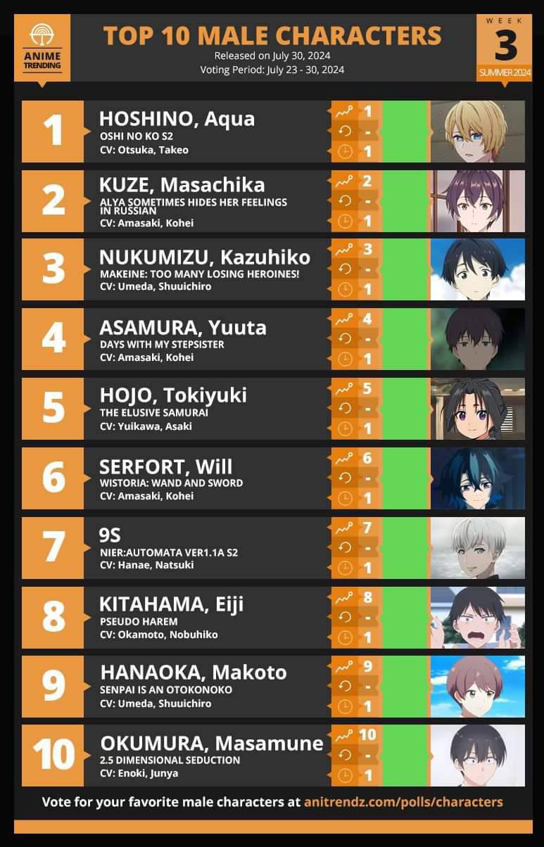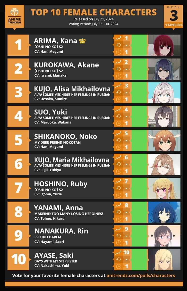 อันดับอนิเมะมาแล้วค่ะ วีคนี้มีอันดับตัวละครและคู่ชิปด้วยนะคะ