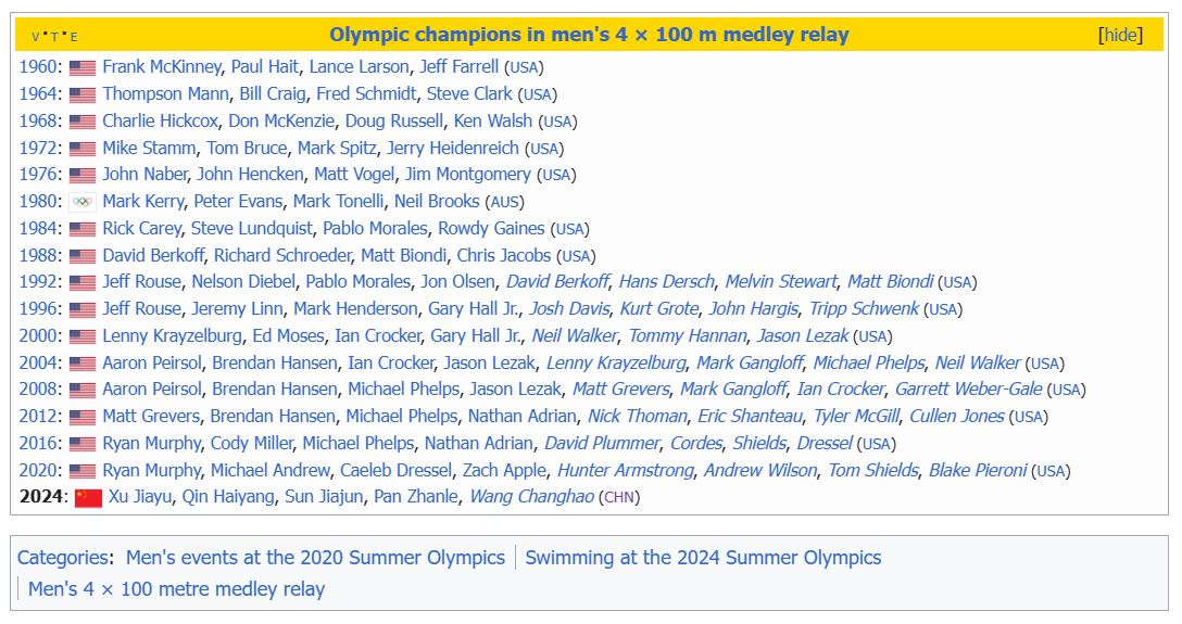 กีฬาว่ายน้ำ เมดเลย์ ชายล้วน 4x100