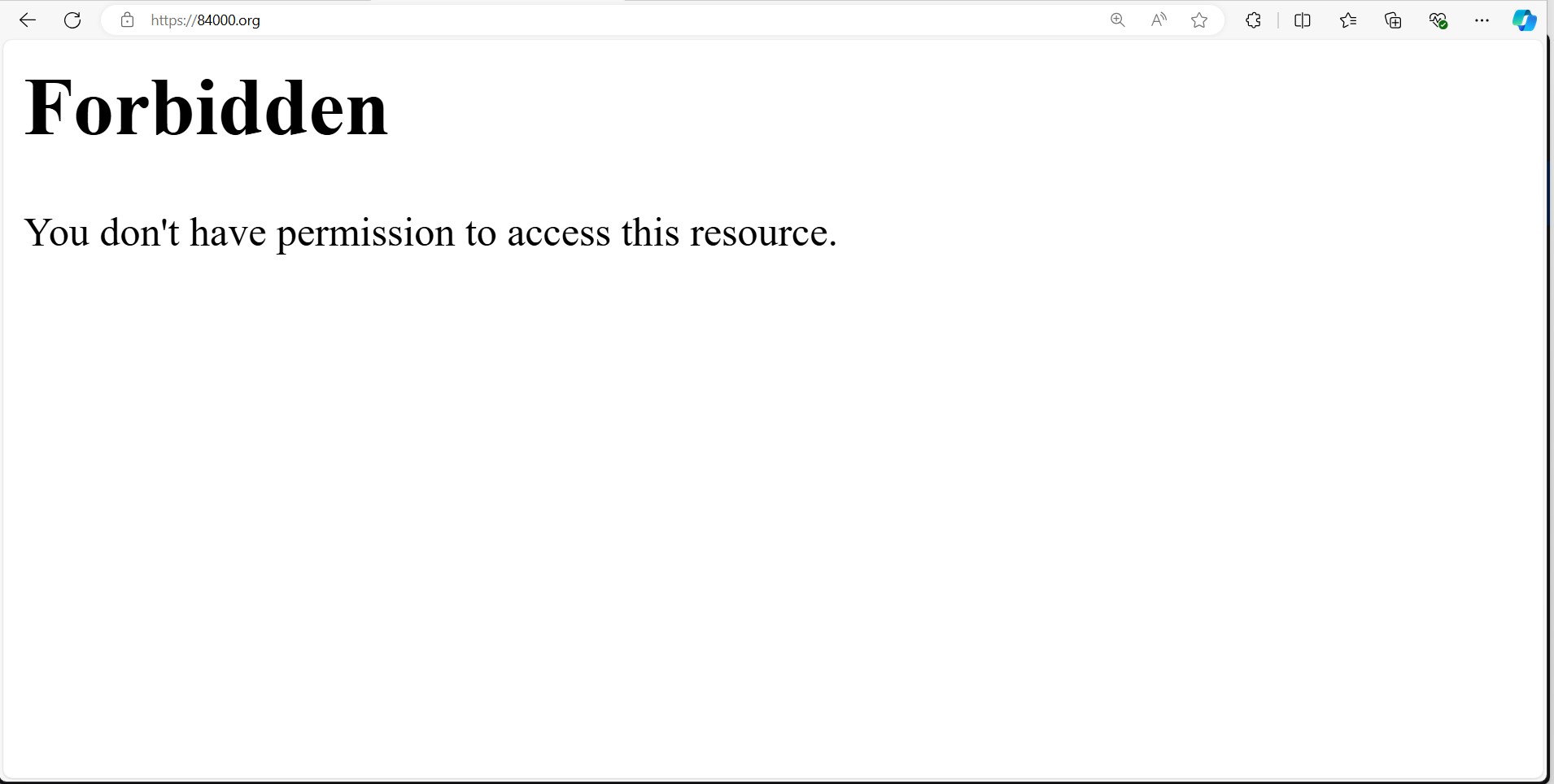ช่วง 3 วันนี้เป็นบ่อยครับ พอผมเข้าเว็บไซต์ 84000.org เพื่อค้นหาข้อมูลพระไตรปิฎกเพื่อทำงานวิจัย ก็เข้าไม่ได้ ล่าสุดวันนี้พอผมเข้าไป มันก็ขึ้นหน้าต่างสีขาวพร้อมกับข้อความว่า "Forbidden You don't have permission to access this resource." แสดงว่าระบบของเว็บไซต์นั้นได้บล็อกไม่ให้ผมเข้าไปยังหน้าเว็บหรือไฟล์ที่คุณต้องการดู ใช่ไหมครับ แล้วผมต้องทำไงครับ