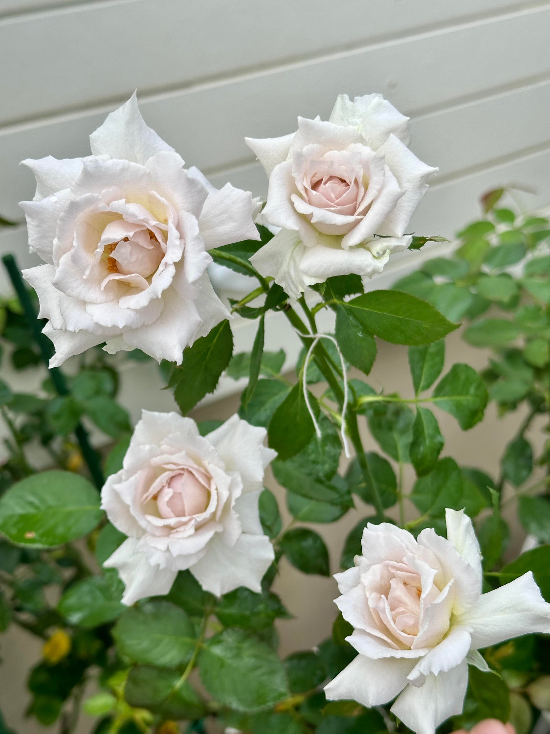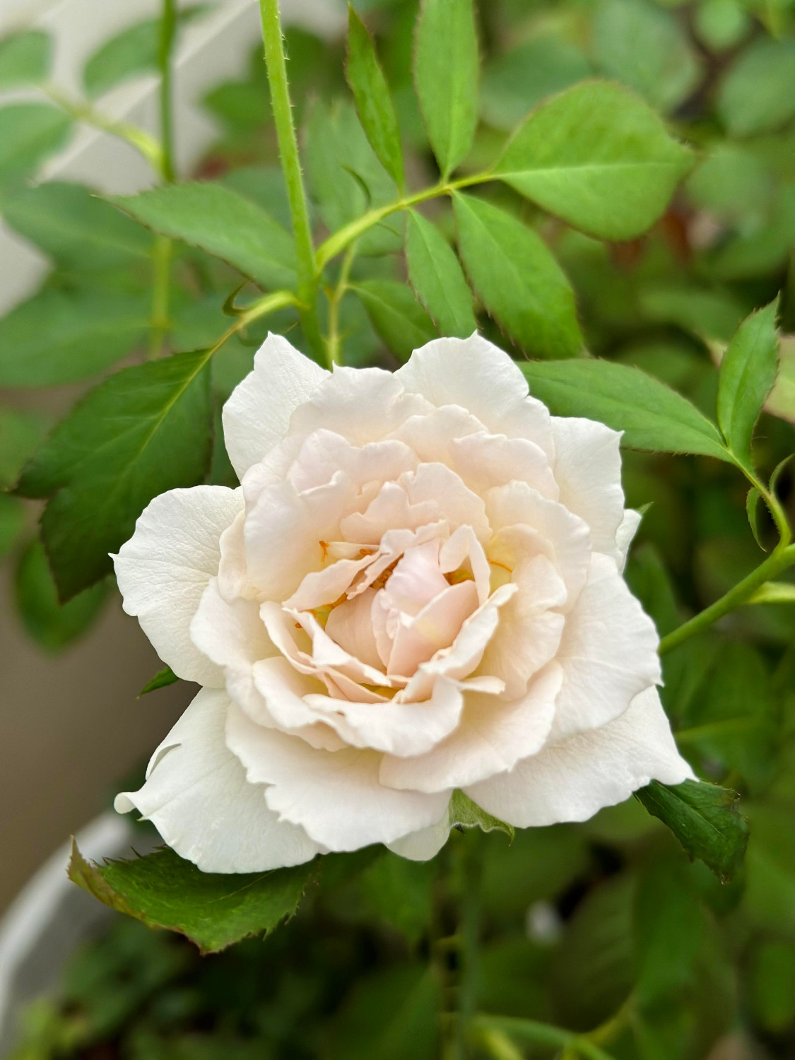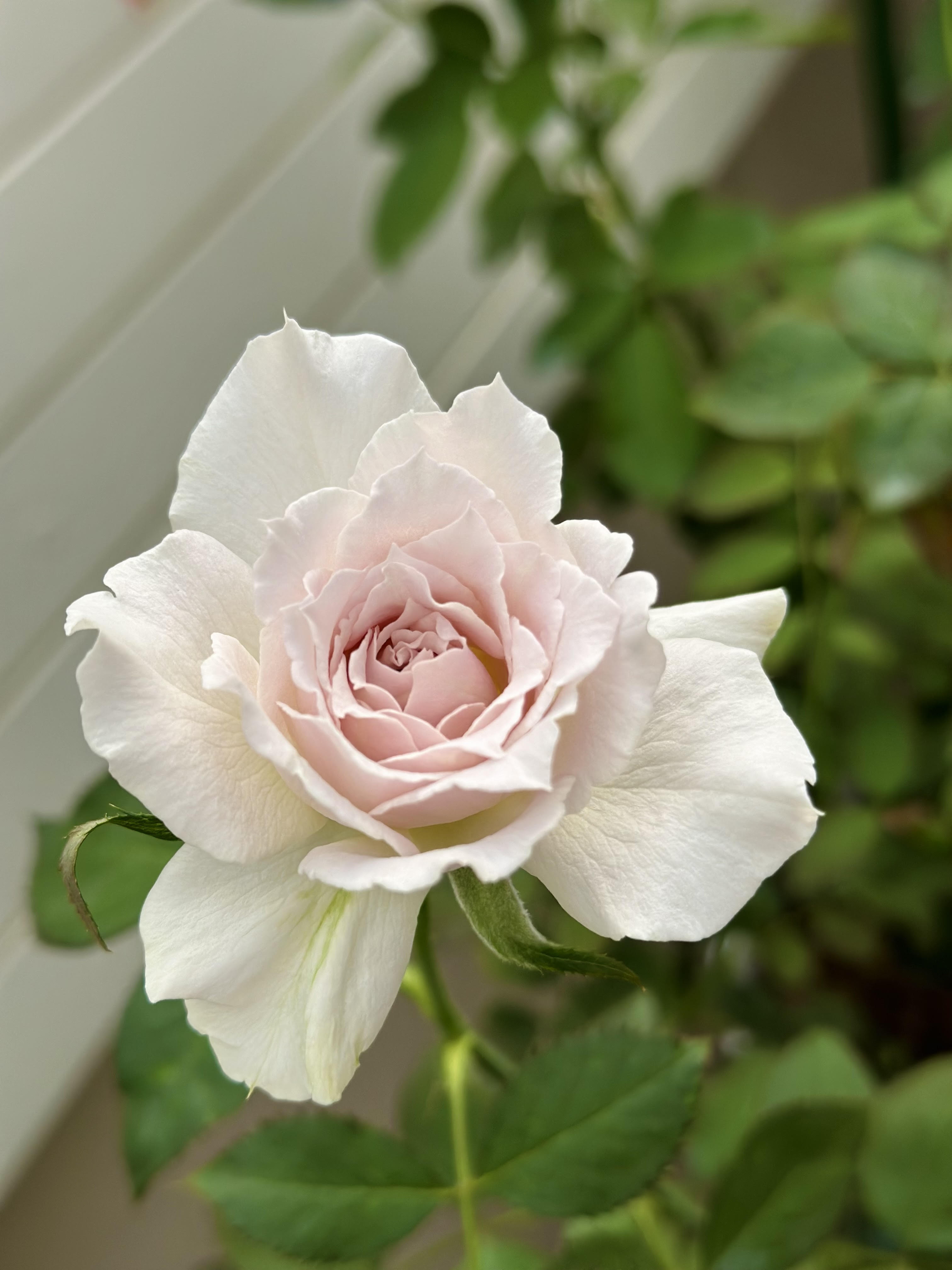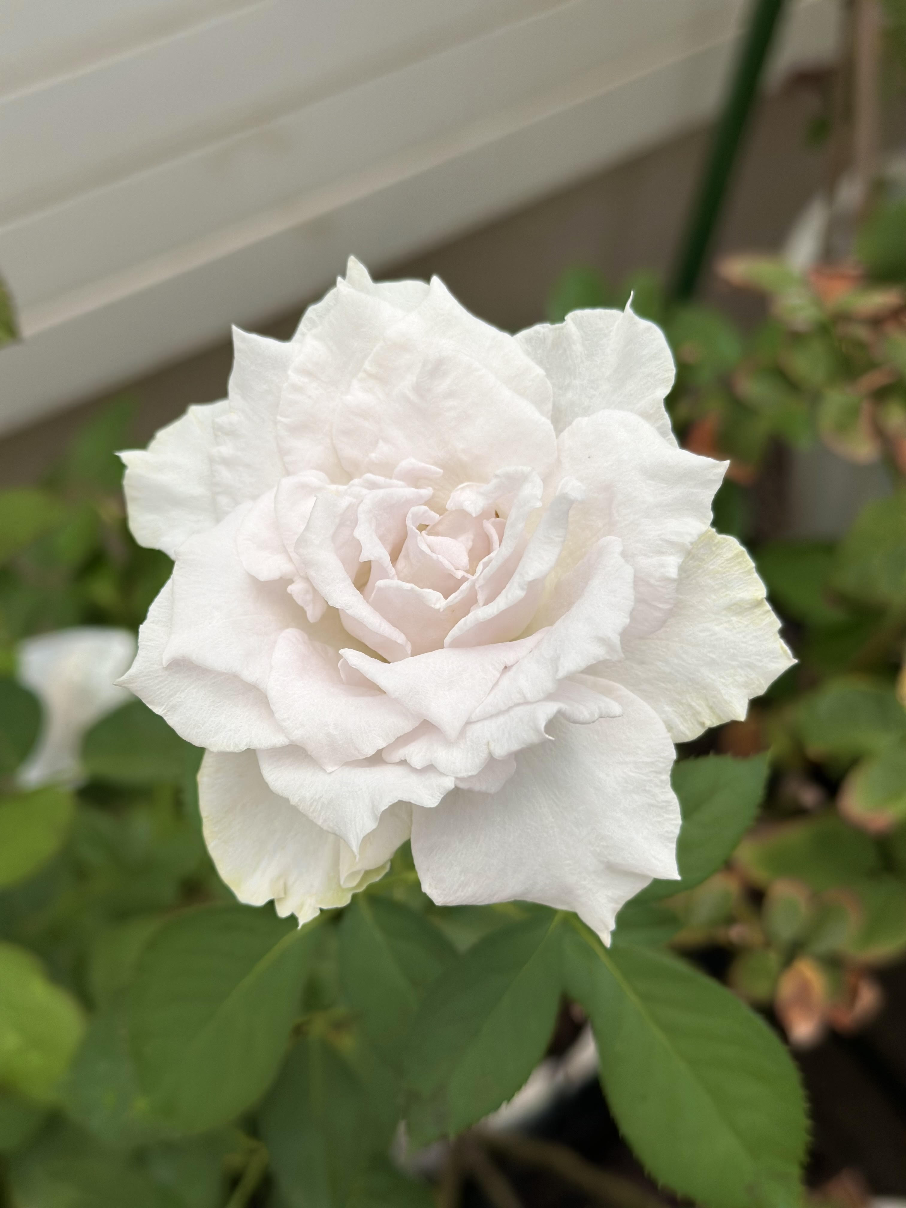 เป็นกุหลาบที่มักจะออกดอกเดี่ยว หรืออาจจะเป็นช่อ 2-3 ดอกต่อช่อบ้าง กลีบดอกสีขาวตุ่น (ไม่ได้ขาวบริสุทธิ์อย่าง Pope John Paul II) ตรงกลางดอกเป็นสีเทาอมม่วงอ่อนๆ ขอบกลีบเป็นริ้วระบาย มีกลิ่นหอมอ่อนมากๆ จนแยกไม่ออกว่าคือกลิ่นอะไรครับ