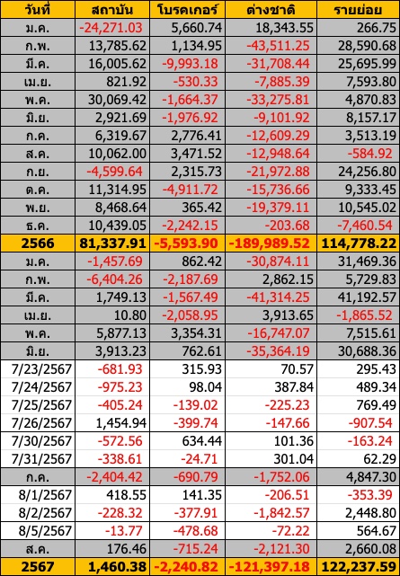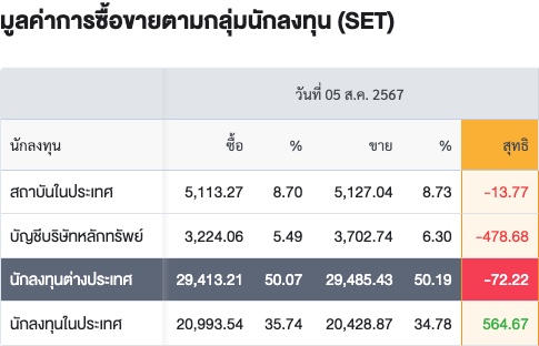 Sinthorn Summary 5/8/2567 : ต่างชาติขายสุทธิ -72.22 ลบ.