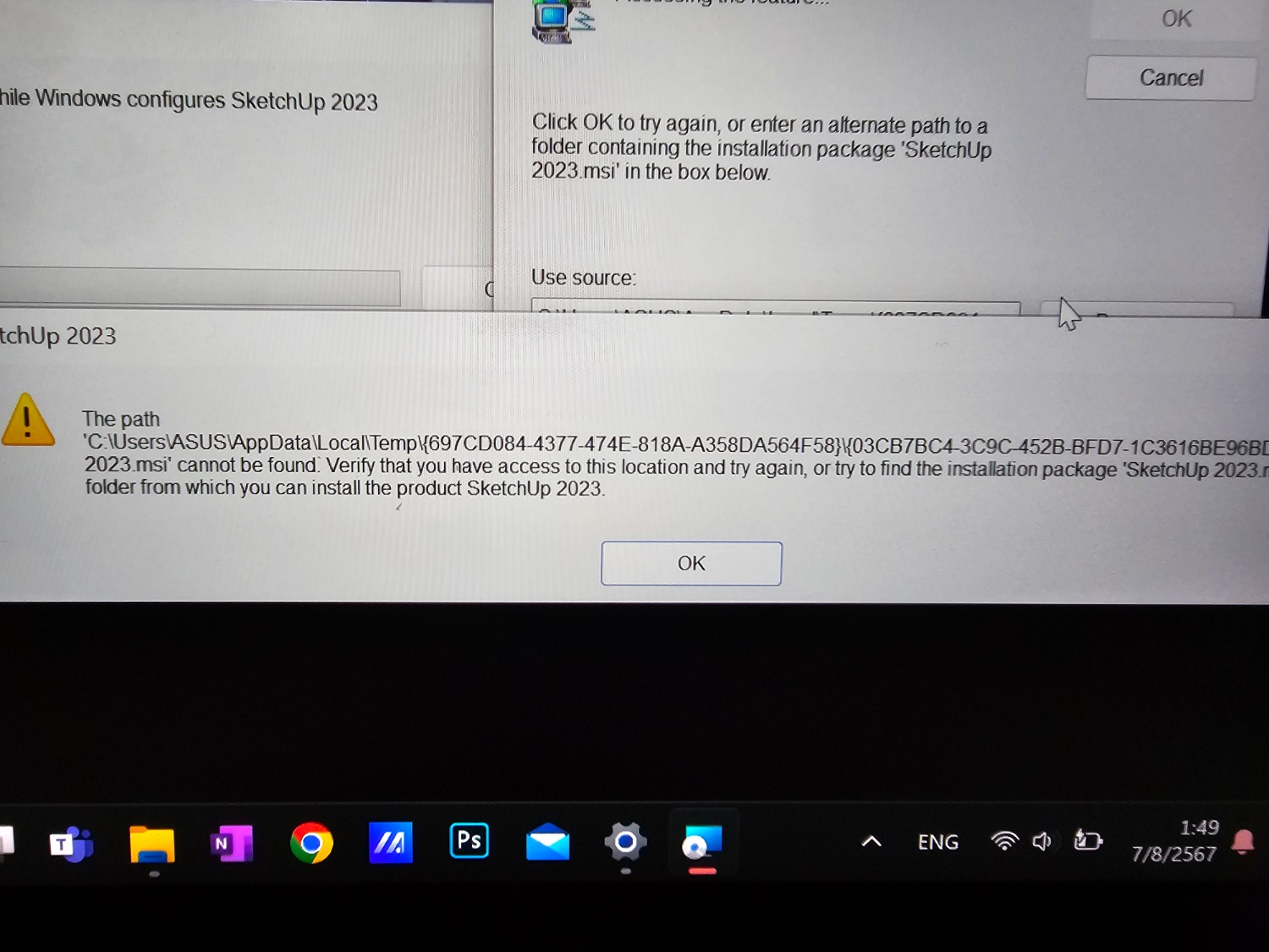 เปิด SketchUp ไม่ได้ช่วยด้วยค่ะ