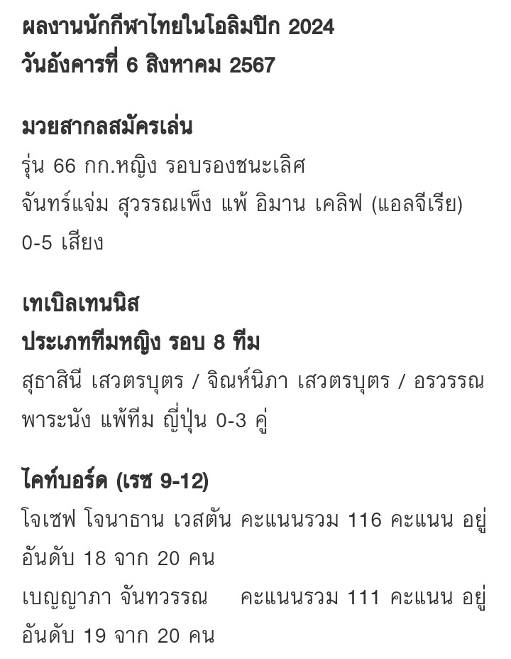 สรุปตารางเหรียญ + ลุ้นนักกีฬาไทย DAY 12