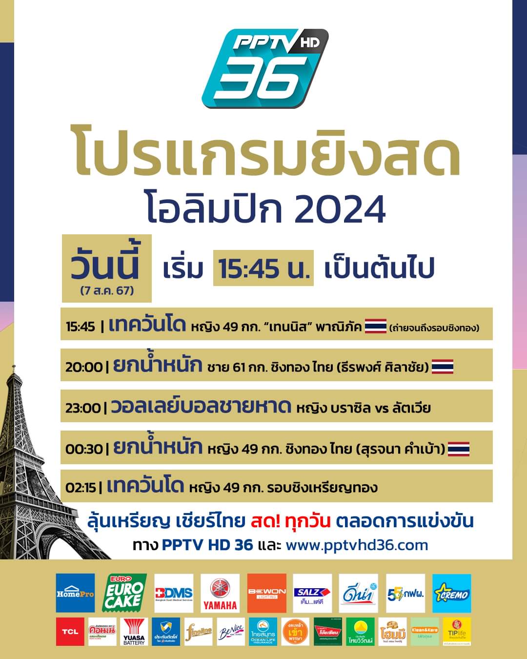คืนวันพุธที่ 7 ส.ค. 67 ทาง PPTV HD 36