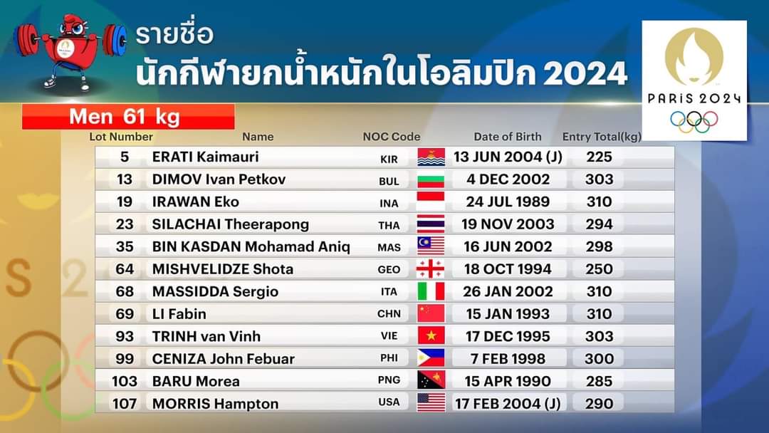 🏋♂️ 20:00 | ยกน้ำหนัก ชาย 61 กก. ชิงเหรียญทอง 🥇 ไทย "ธีรพงศ์" 🇹🇭