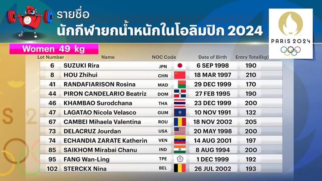 🏋️♀️ 00:30 | ยกน้ำหนัก หญิง 49 กก. ชิงเหรียญทอง 🥇 ไทย "สุรจนา"