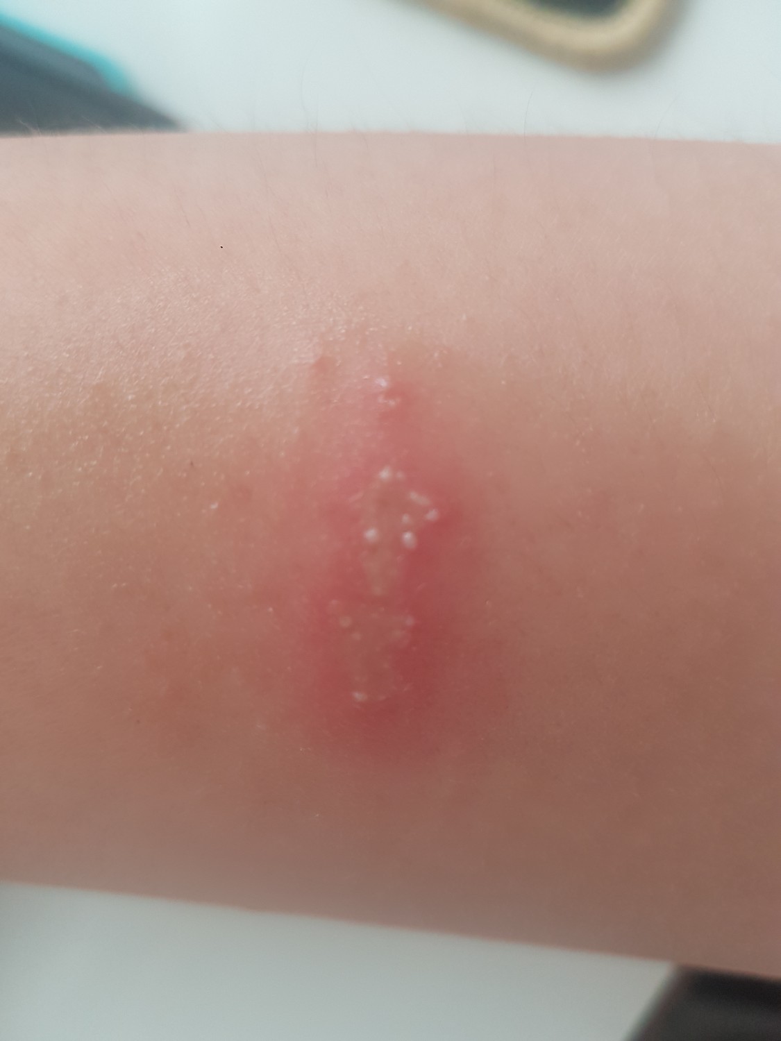 คนที่บ้านไปโดนอะไรมาไม่รู้ค่ะ ลักษณะคล้ายฝี แต่ไม่มีหัวฝีแต่เป็นตุ่มน้ำใสตามรูปเลยค่ะ ไม่ปวด ไม่คัน รู้ตัวตอนที่จะนวดแขนแล้วมีอะไรแข็งๆที่แขน ไม่รู้ว่าเป็นนานแค่ไหนค่ะ กดแล้วเจ็บเหมือนสิว