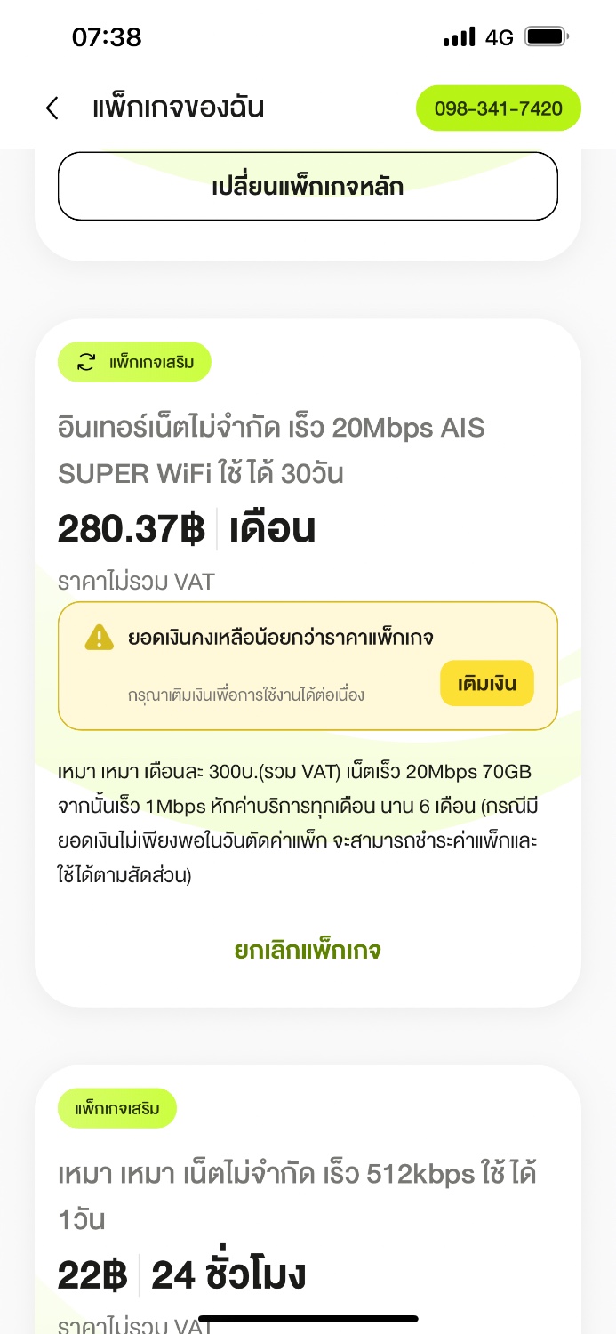 aisเติมเงินซื้อแพ็คเกจแต่ยอดไม่เข้า!!!