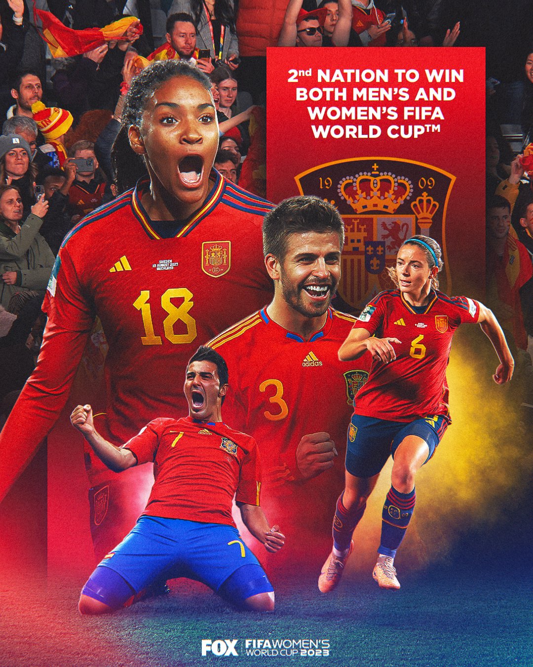 และสเปน ก็ยังเป็นชาติที่สอง ที่ได้แชมป์ฟุตบอลโลกทั้งชายและหญิงต่อจากเยอรมันอีกด้วย