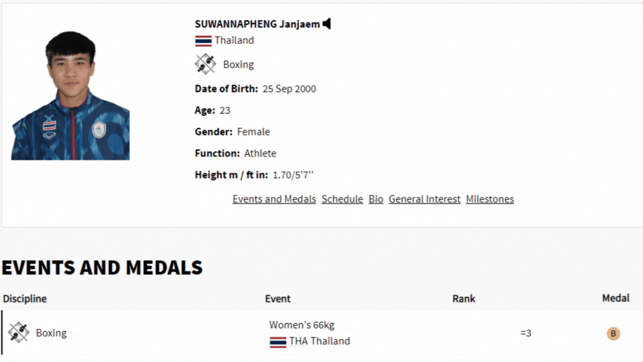 2 เหรียญทองแดง จากมวยสากลสมัครเล่น รุ่น 66 กิโลกรัม-หญิง โดย