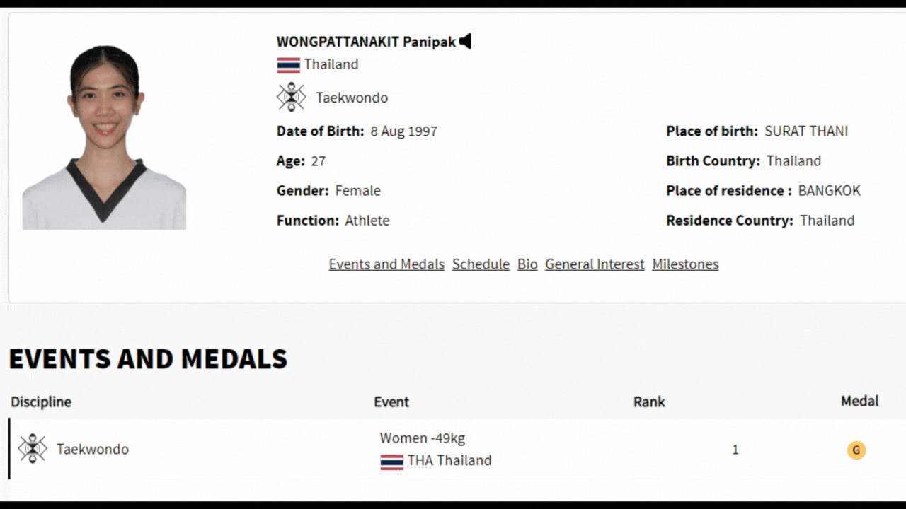 *1 เหรียญทอง จากการแข่งขันเทควันโด รุ่น 49 กิโลกรัม-หญิง โดย"เทนนิส" พาณิภัค วงศ์พัฒนกิจ