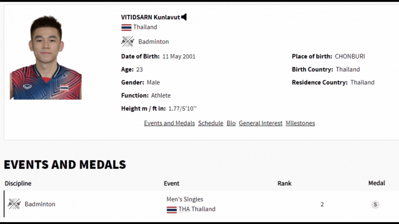 3 เหรียญเงิน จากการแข่งขันแบดมินตัน ประเภทชายเดี่ยว โดย