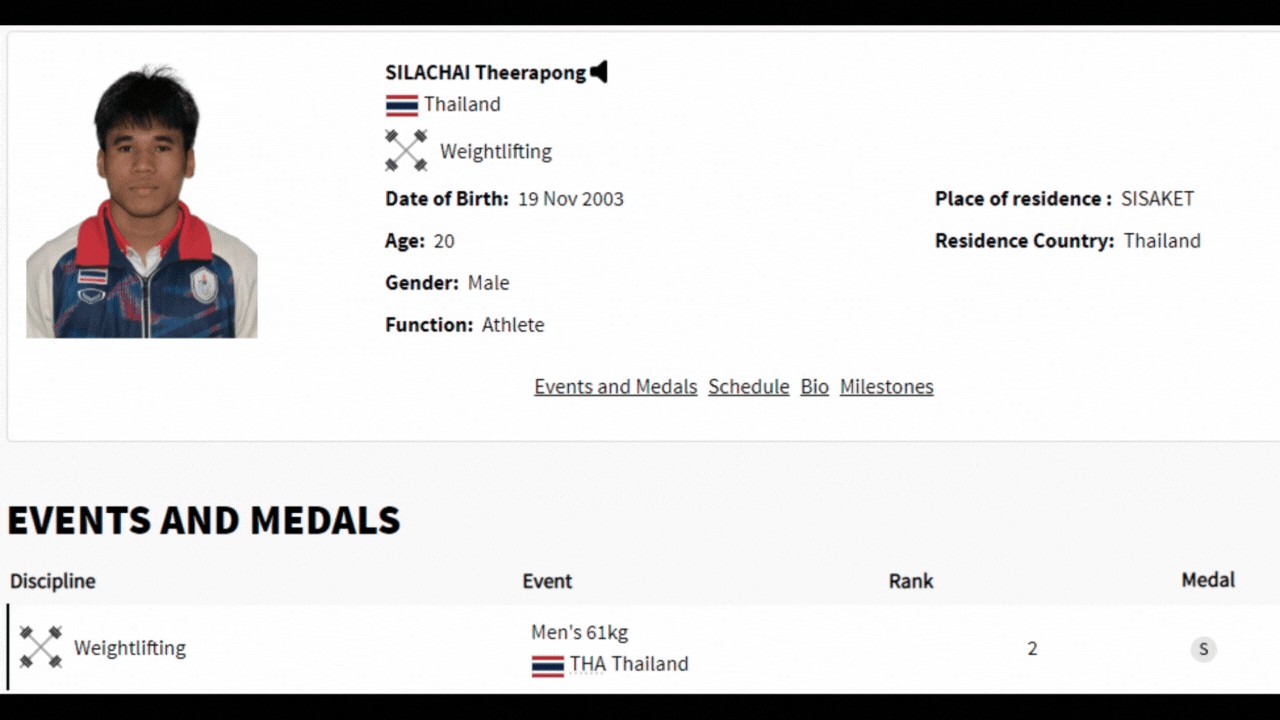 *3 เหรียญเงิน จากการแข่งขันแบดมินตัน ประเภทชายเดี่ยว โดย"วิว" กุลวุฒิ วิทิตศานต์, การแข่งขันยกน้ำหนัก รุ่น 61 กิโลกรัม-ชาย โดย"ฟ่าง" ธีรพงศ์ ศิลาชัย และการแข่งขันยกน้ำหนัก รุ่น 73 กก.ชาย โดย"เวฟ" วีรพล วิชุมา