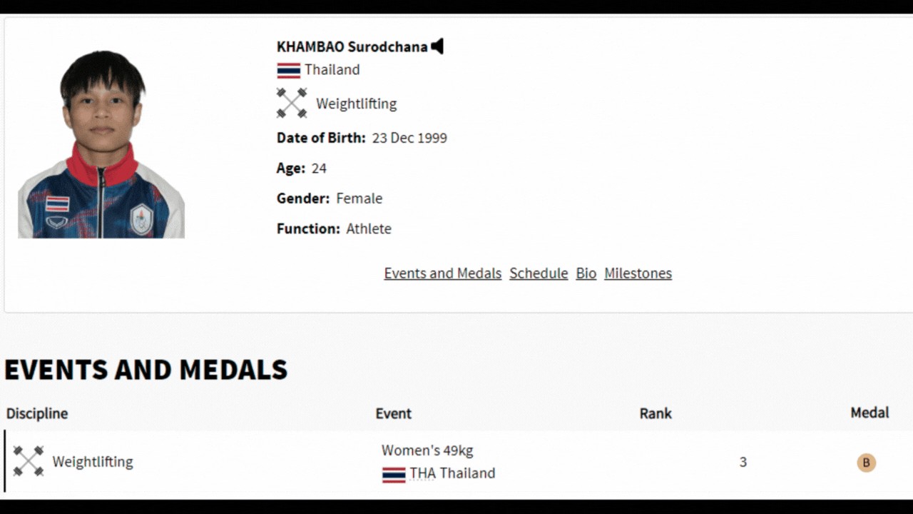 *2 เหรียญทองแดง จากมวยสากลสมัครเล่น รุ่น 66 กิโลกรัม-หญิง โดย"บี" จันทร์แจ่ม สุวรรณเพ็ง และ ยกน้ำหนัก รุ่น 49 กิโลกรัม-หญิง โดย"ออย" สุรจนา คำเบ้า