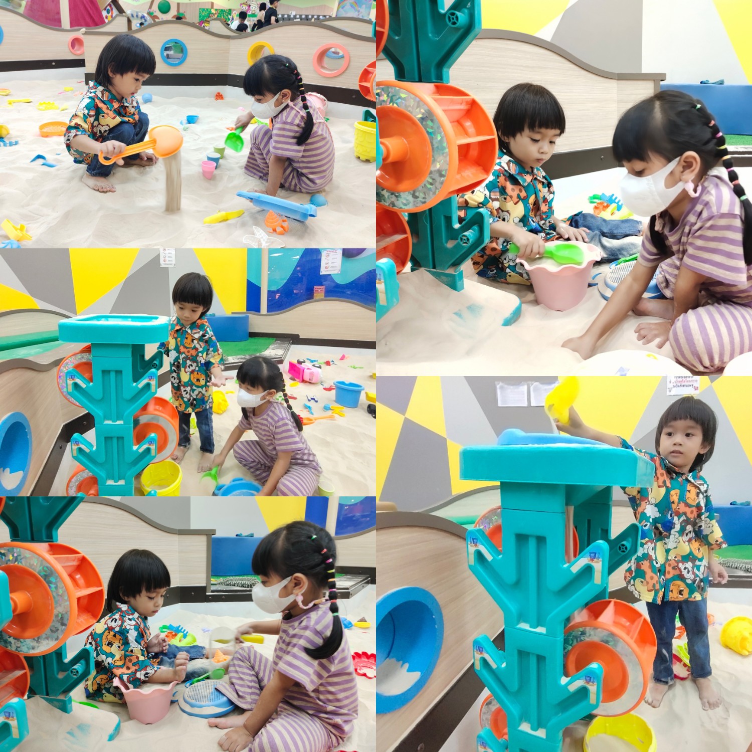 🏜 Sand pit บ่อทรายจำลอง :: โซนนี้น้องบี๋เล่นนานมาก 🏖️ เพลินกับการเล่นตักทราย ฝึกการใช้กล้ามเนื้อมัดเล็กได้ดีเลยทีเดียว