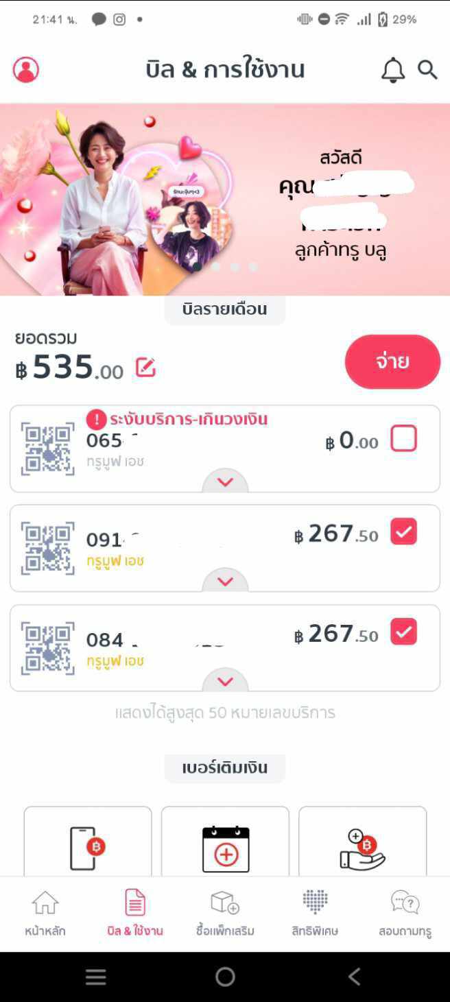 True จ่ายเงินค่าเน็ตของซิมรายเดือนแล้วแต่บิลไม่ตัด