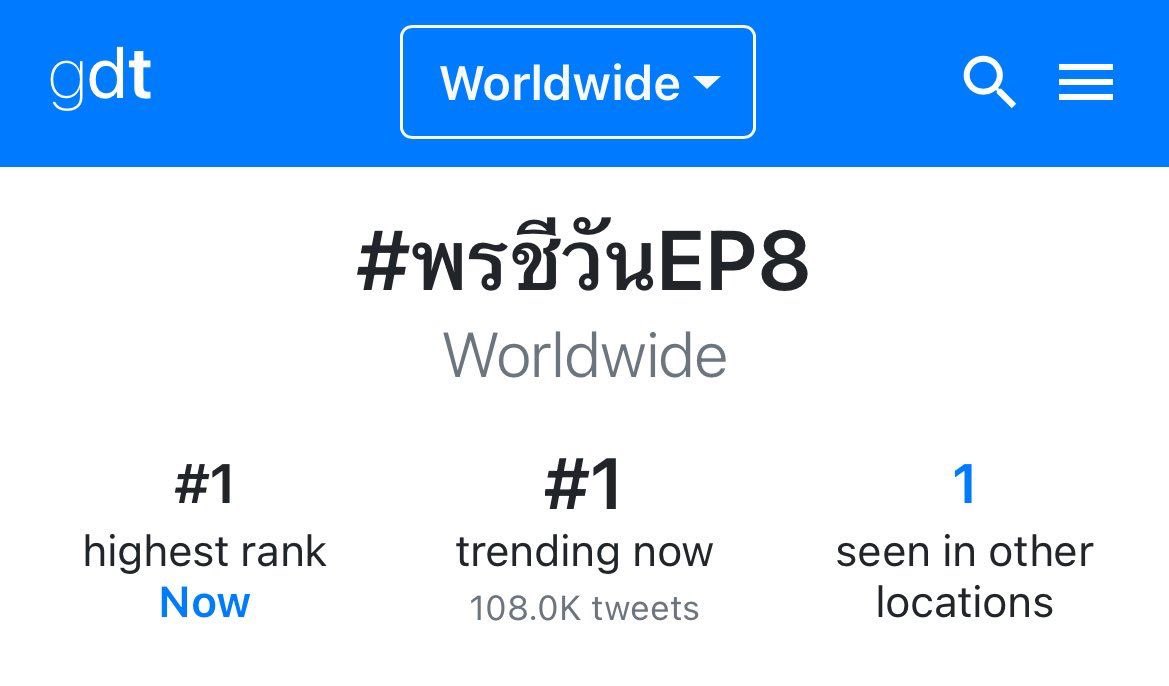 "พรชีวัน Ep.8" ขึ้นเทรน X อันดับ 1 ของโลก ยินดีด้วย