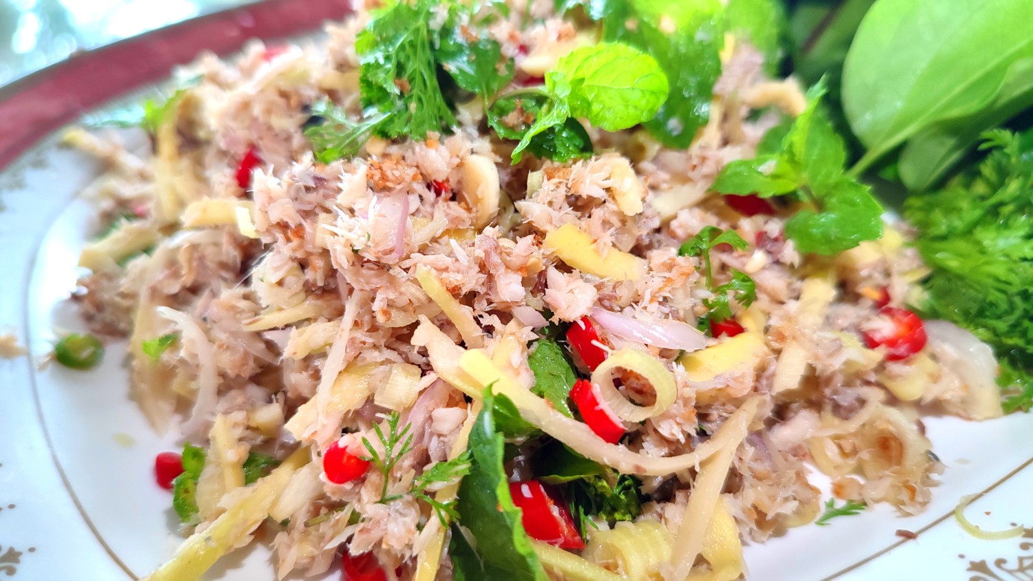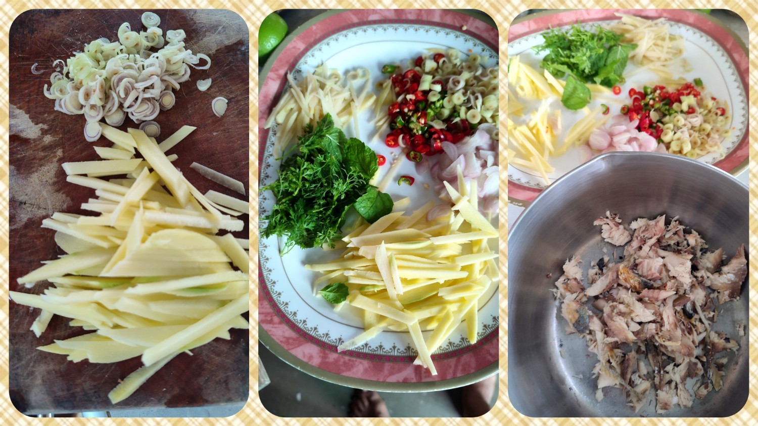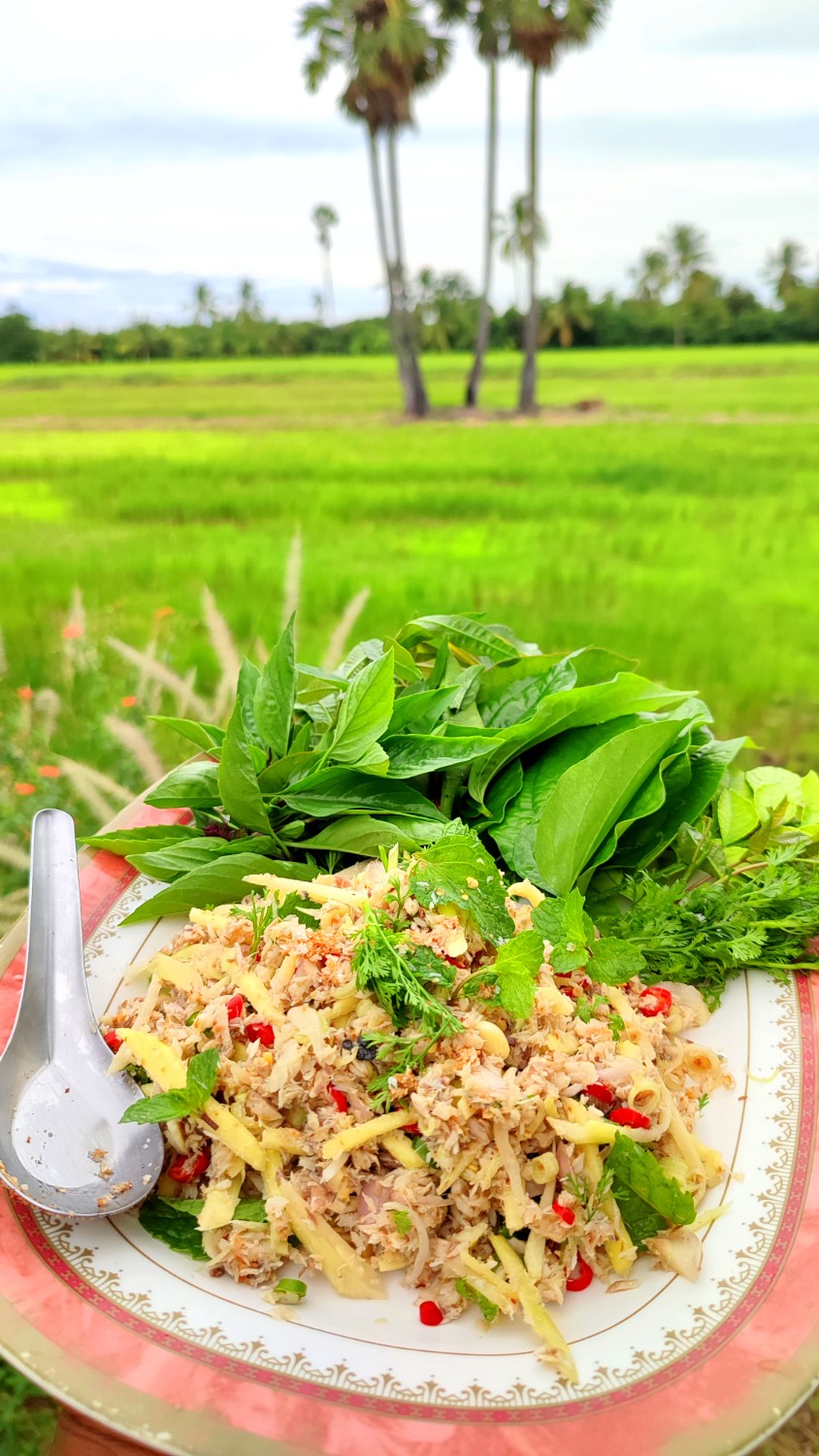 วันนี้ที่โคกหนองนามีมะพร้าวร่วง แม่ครัวเห็นเข้าเลยมีไอเดียอยู่ 2 รายการก็คือขนมตาลกับยำปลาทูแต่ขนมตาลเพิ่งทำเมื่อไม่กี่วัน วันนี้ก็เลยจัดการทำเป็นกับข้าวยำปลาทูกับผักกาดดองผัดไข่ เพราะว่ายำปลาทูนั้นต้องเอามะพร้าวขูดไปคั่วไฟด้วยครับ ทานคู่กับใบชะพลู,โหระพา,ผักชี,มะตูมบาเรน,ใบคะนิว,ยอดชะมวง วันนี้กับข้าวติดคอหน่อยครับไม่มีน้ำเลย