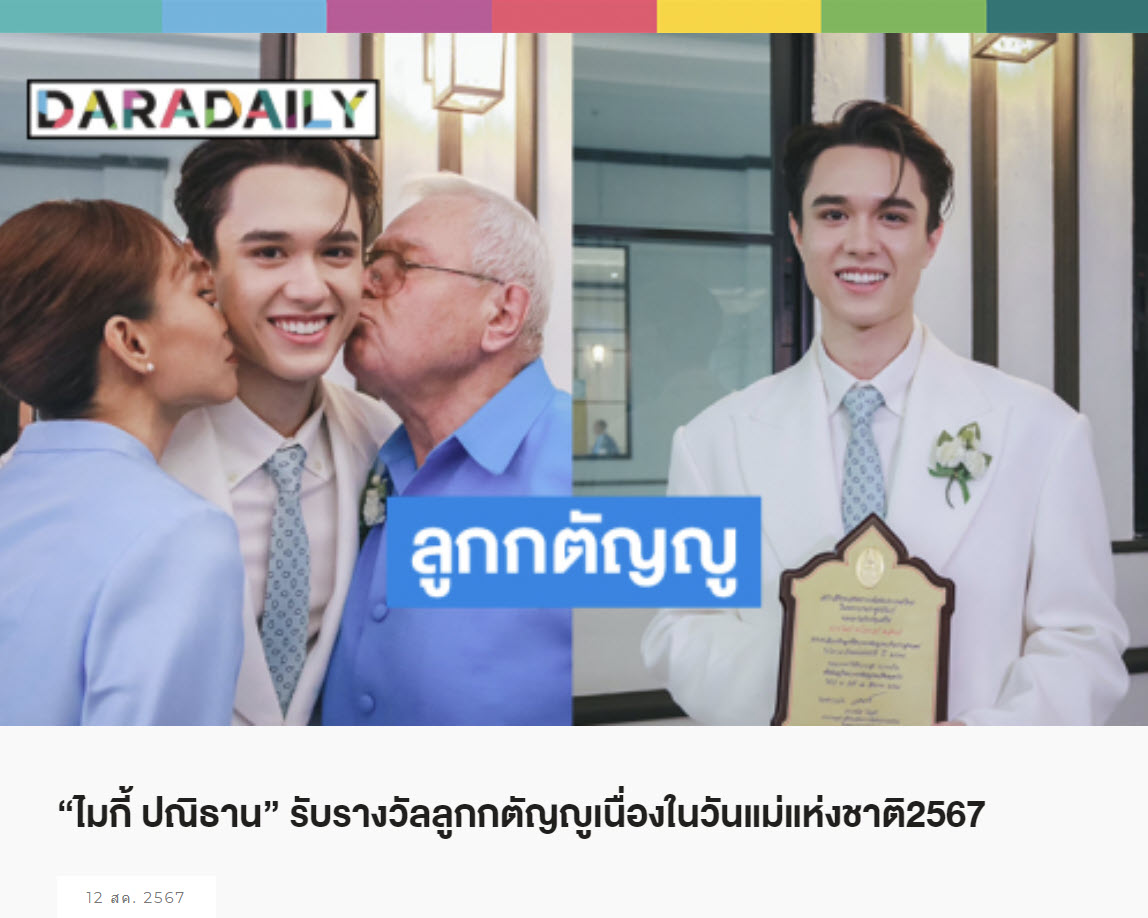 “ไมกี้ ปณิธาน” รับรางวัลลูกกตัญญูเนื่องในวันแม่แห่งชาติ2567