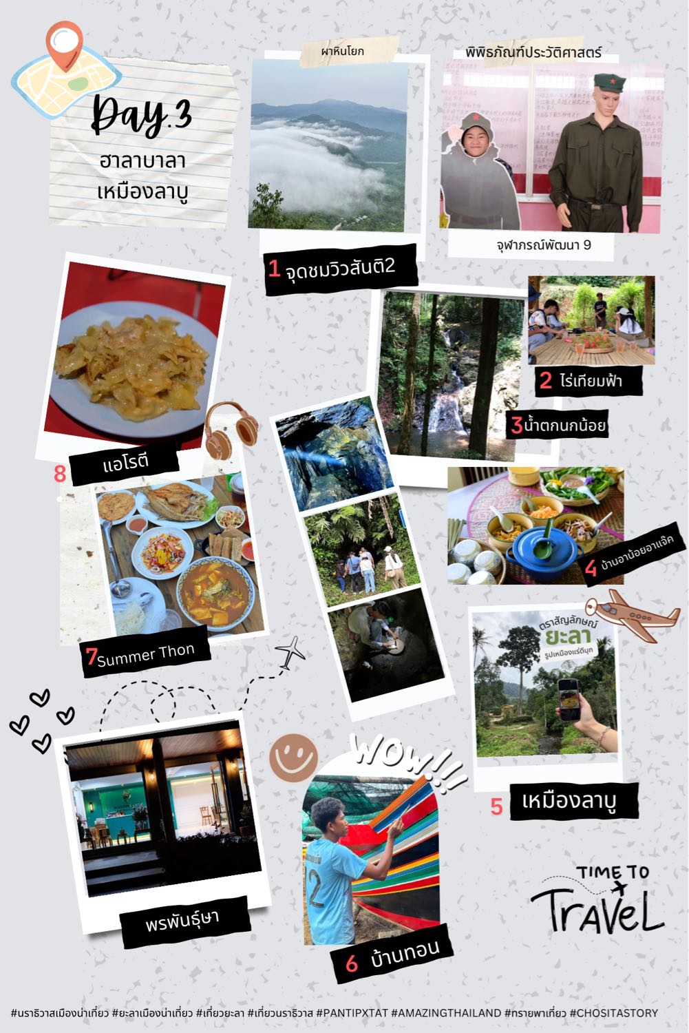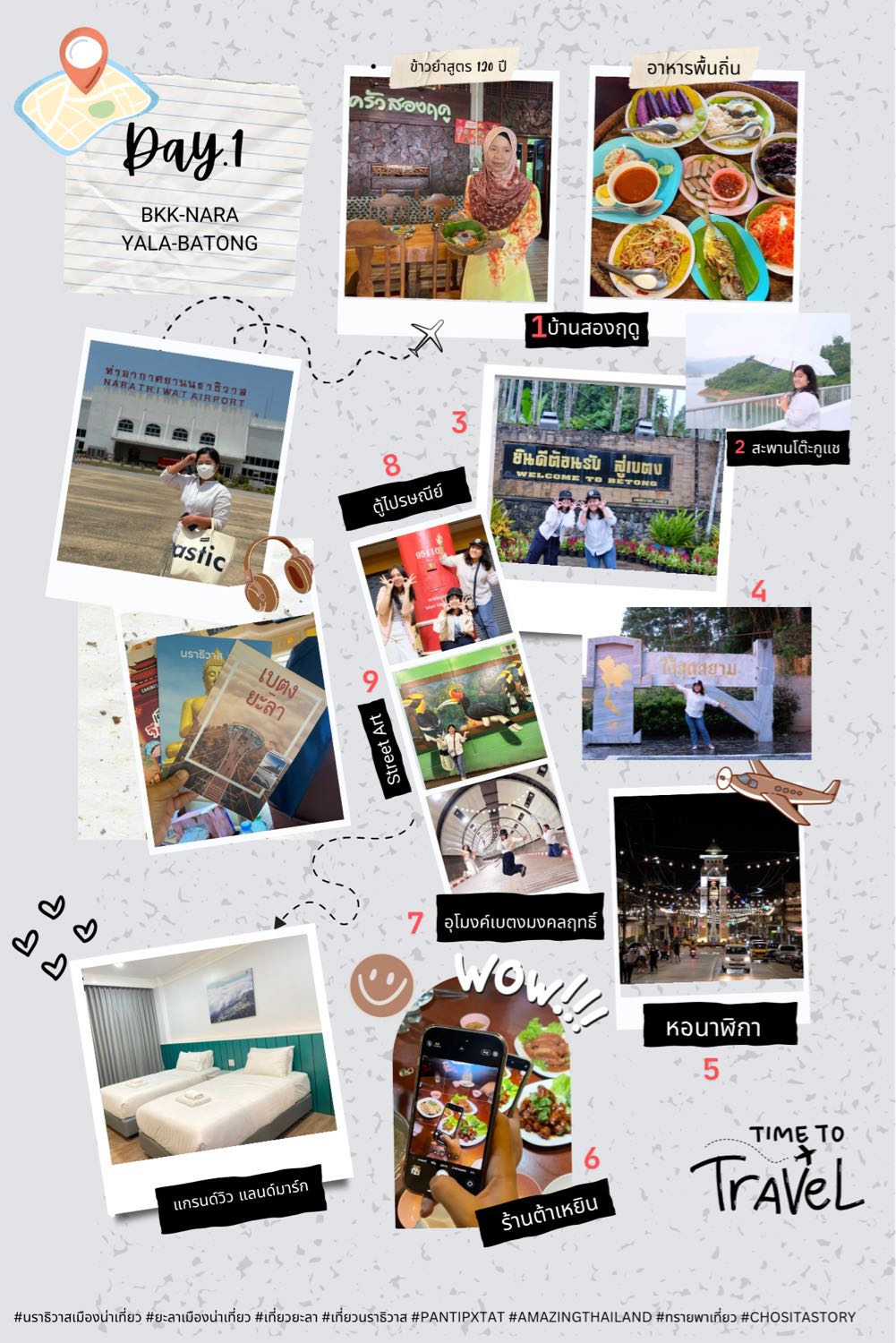 สวัสดีเพื่อนๆสมาชิก ทริปนี้เราจะพาเพื่อนๆไปเที่ยวยังจังหวัดยะลา นราธิวาสกันค่ะ ก่อนอื่นต้องขอขอบคุณ TATxPANTIP ที่ชวนเราออกมาร่วมเดินทาง เปิดประสบการณ์ใหม่ๆร่วมกัน เราเองก็พึ่งเคยมาเที่ยวสองจังหวัดนี้เป็นครั้งแรก ใจอยากจะมาเที่ยวจังหวัดแถบชายแดนใต้นานแล้ว รอบนี้ได้มาแล้ว ต้องบอกเลยว่าประทับใจมากๆ ทั้งเพื่อนร่วมทริป สถานที่ท่องเที่ยว ธรรมชาติที่สมบูรณ์ และผู้คน ทั้งน่ารักและใจดีกว่าที่คิด อาหารก็อร่อยมีมากมายหลากหลายเชื้อชาติให้ได้ลิ้มลอง ถ้าทุกคนเปิดดูรีวิวนี้จนจบ จะรู้ว่าทุกสถานที่ชายแดนใต้ ไม่ได้น่ากลัวอย่างที่คิด ส่วนตัวรู้สึกว่านักท่องเที่ยวคึกคักมาก อยากให้ทุกคนที่ยังไม่ได้มาเที่ยว ได้มาสัมผัสเมืองน่าเที่ยวนี้ไปด้วยกัน (ทริปนี้เที่ยวสองจังหวัดรูปเยอะเหมือนเดิม กิจกรรมแน่นมาก) ว่าแล้วก็เริ่มเลย ....จะได้หลงรักสองจังหวัดยะลา นราธิวาสไปด้วยกัน