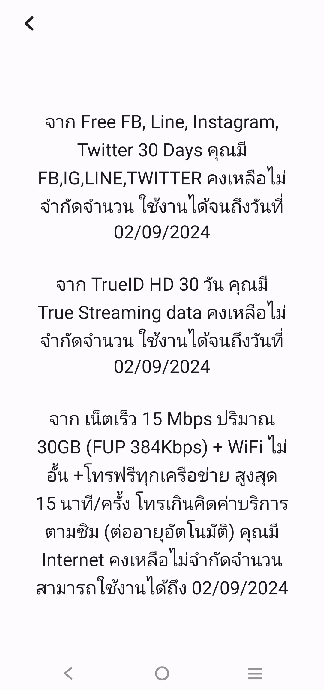 ซิมเติมเงินทรู แจ้งว่าแพ็คเกจอินเตอร์เน็ตเดิมที่ใช้จะหมดอายุ 9/9/68 ให้เติมเงินให้พอสำหรับตัดค่าบริการอัตโนมัติ 200 บาท เราเติมเงิน 200 บาทตามราคาเดิมวันที่ 9/9/68 00.03 น. ไม่ต่อแพ็คเกจเสริมให้แถมเงิ