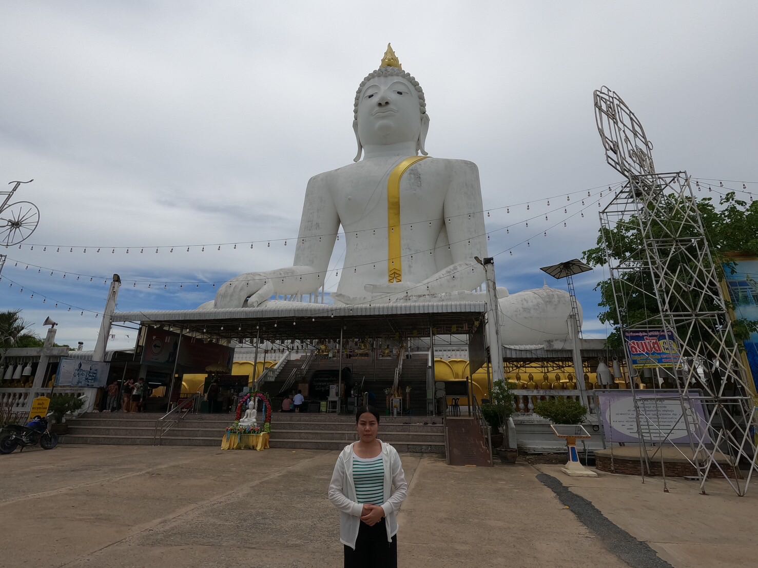 ตรงนี้ก็คือ พระกกุสันโธ พระพุทธรูปปูนปั้นสีขาวองค์ใหญ่ที่สุดในโลก ซึ่งมีความงดงามมาก
