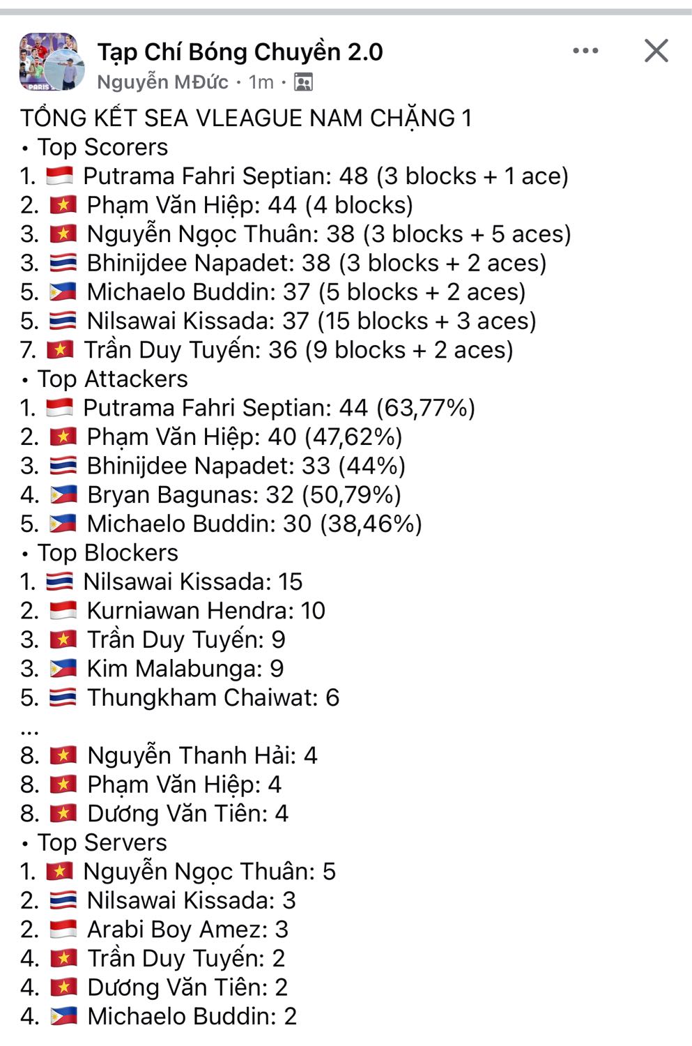 ***แก้ไข ฮัมได้ MVP*** ☄️ Best Outside Hitter 🇮🇩 Farhan Halim 🇵🇭 Michaelo Buddin 🙌 Best Middle Blocker 🇻🇳 Trần Duy Tuyến 🇹🇭 Kissada Nilsawai 💥 Best Opposite 🇹🇭 Napadet Bhinijdee 🤚 Best Setter 🇮🇩 D