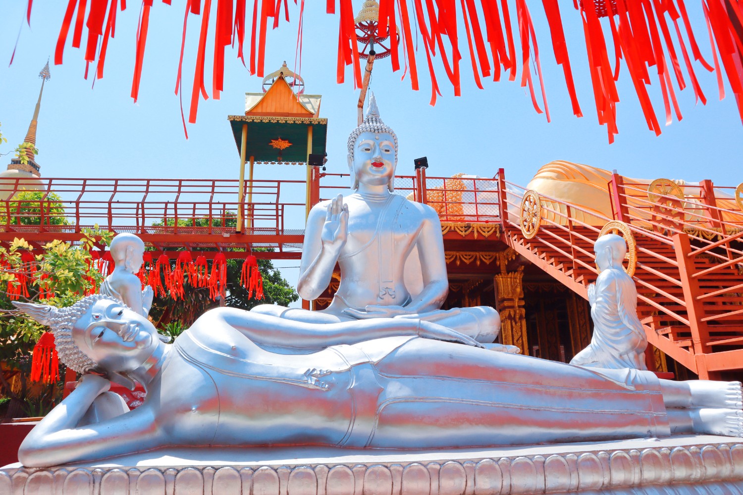 ไหว้พระประจำวันเกิด 8 สี พระพุทธรูปปางไสยาสน์องค์ใหญ่ 21 เมตร เดินลอดบ่วงนาคบาศก์ทรัพย์เศรษฐี 12 ราศี กราบสักการะหลวงพ่อให้เศรษฐีสูง 32 เมตร นมัสการ