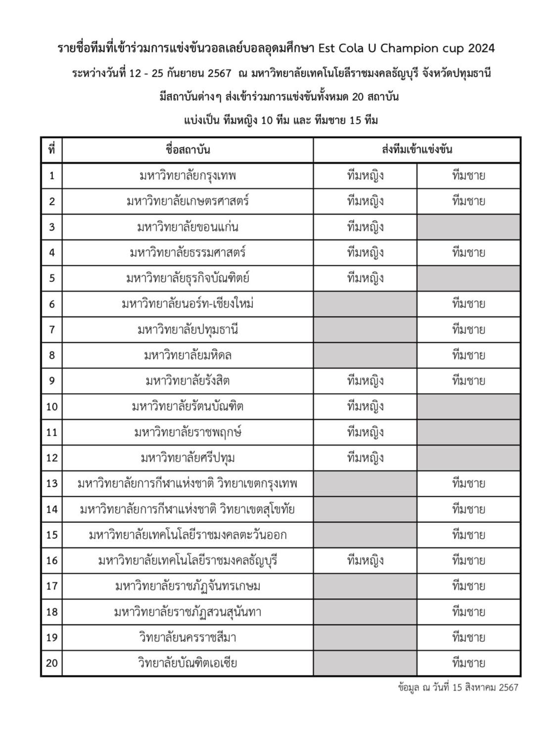 est cola volleyball u-champion cup วอลเลย์บอลอุดมศึกษา