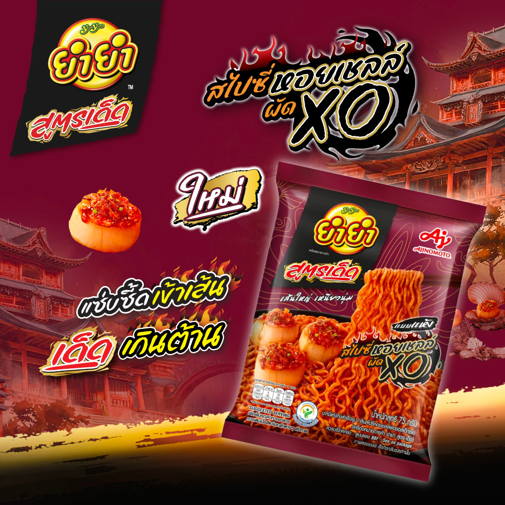 ยำยำ สูตรเด็ด กลิ่นสไปซี่หอยเชลล์ผัดซอสเอ็กซ์โอ แบบแห้ง