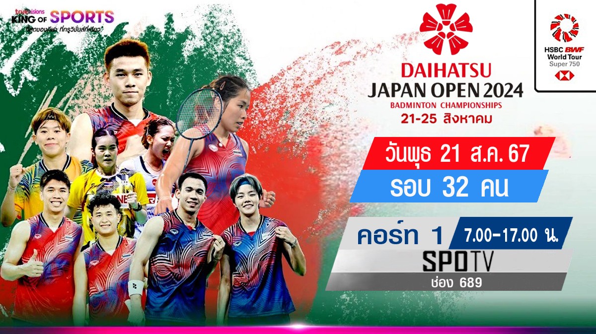 เชียร์สด ! แบดมินตัน DAIHATSU Japan Open 2024 : รอบ 32 คน (21 ส.ค. 67) (คู่แรกเวลา 7.00 น.)