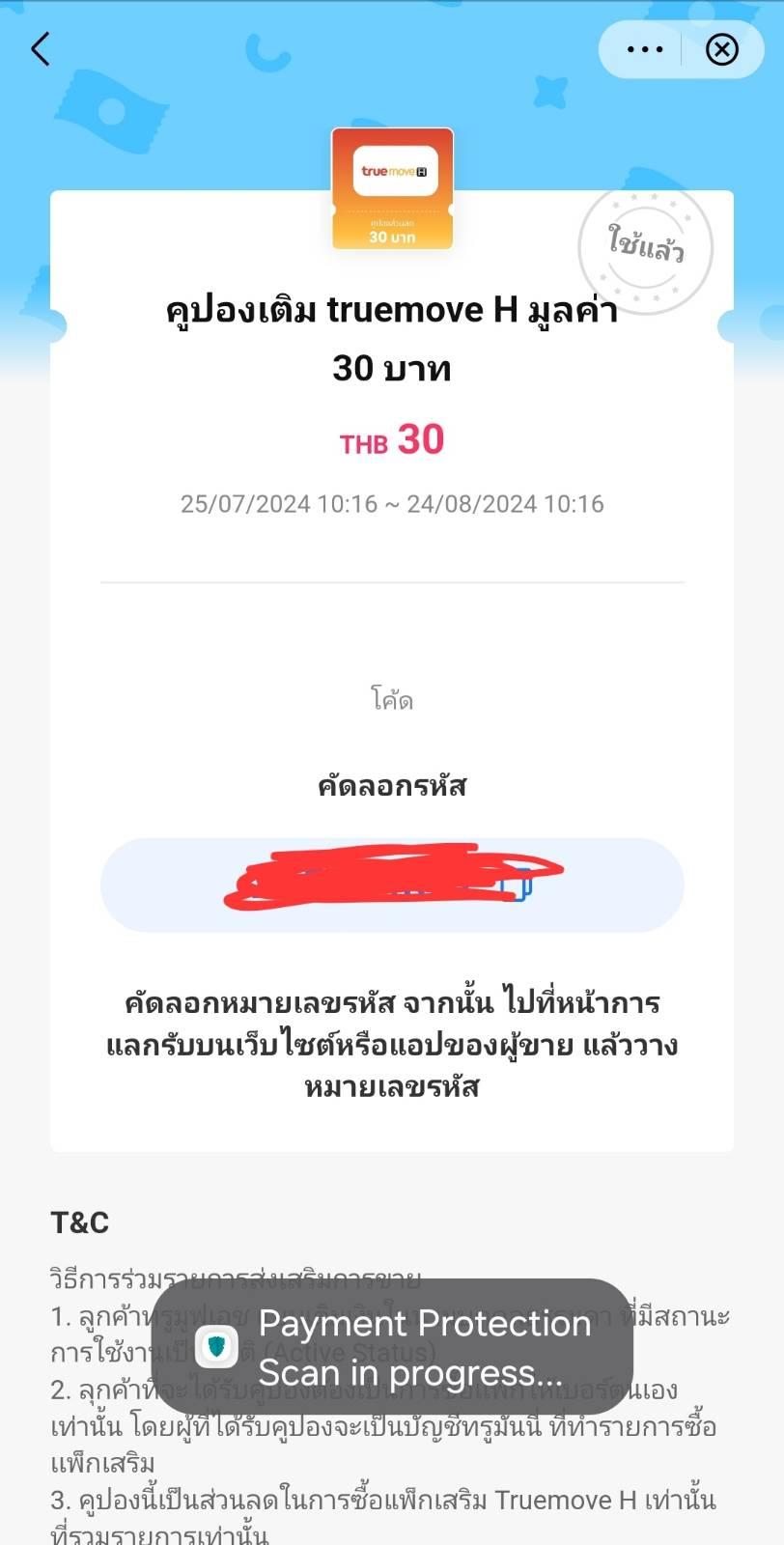 ในรูปตรงคูปองเขียนว่าเติม truemove h ผมก็เข้าใจว่าสามารถเติมเงินมือถือเข้าโทรศัพท์ได้ ผมซื้อมาเพื่อที่จะเติมเงินให้น้าผม พอซื้อมาแล้วจ่ายเงินเรียบร้อยก็เอ๊ะแล้วมันเติมเงินตรงไหนเนี่ย ก็เลยกดไปที่คูปอง