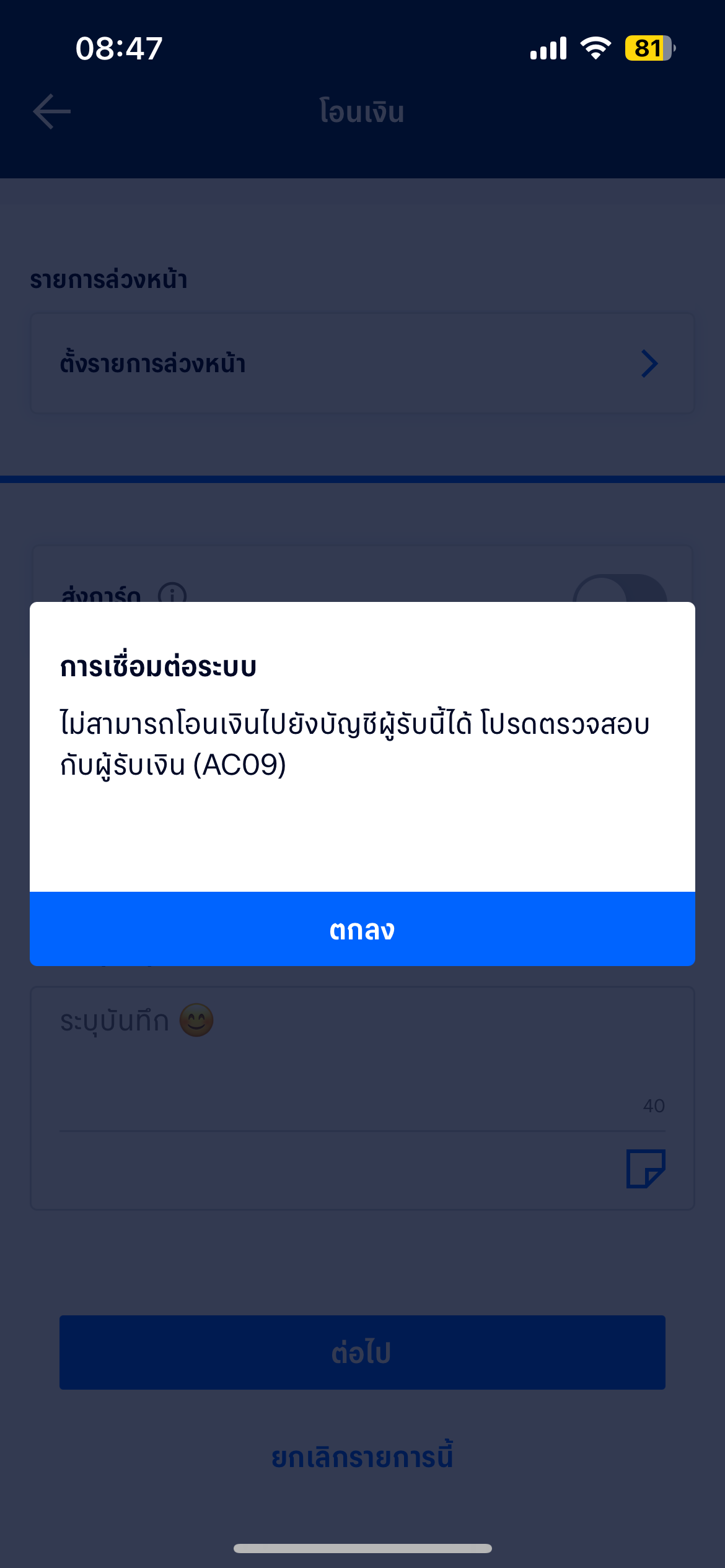 ทำไมโอนเงินออกไปใหนไม่ได้ ขึ้นac09