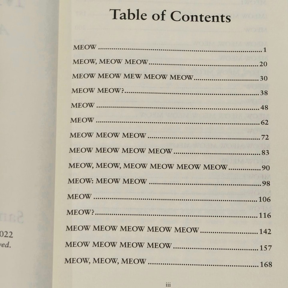 เรื่องราวแบ่งเป็น 15 บท ว่าด้วยเรื่องของแมวตัวนึงตั้งแต่ถือกำเนิดออกมา