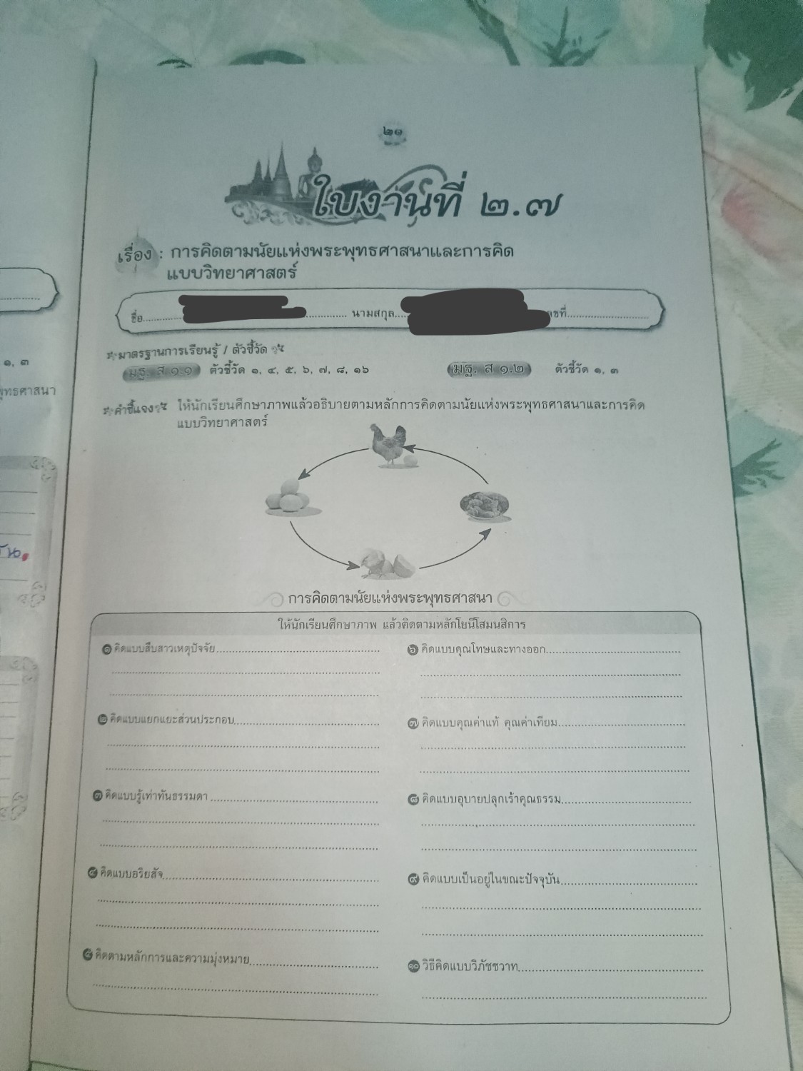 คืออะไรคะเนี่ยย ฉันงงเป็นจำนวนมาก วอนผู้รู้ช่วยตอบทีค่าา5555 เหลือสองหน้านี้ไม่เก็ทมากๆ แบบฝึกหัดพระพุทธสอนธรรมะจนทำเครียดค่ะตอนนี้