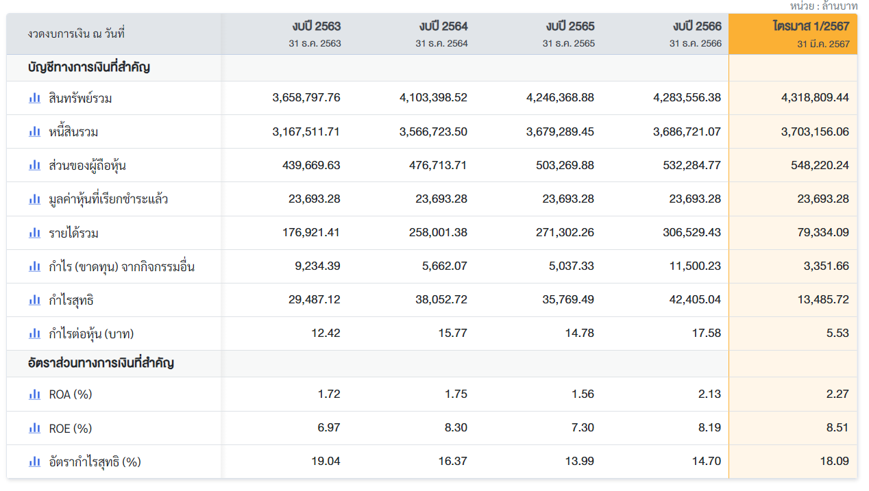 งบการเงิน ไตรมาส 1/67 บริษัทมีรายได้ 79,000 ล้านบาท มีกำไรสุทธิ 13,400 ล้านบาท