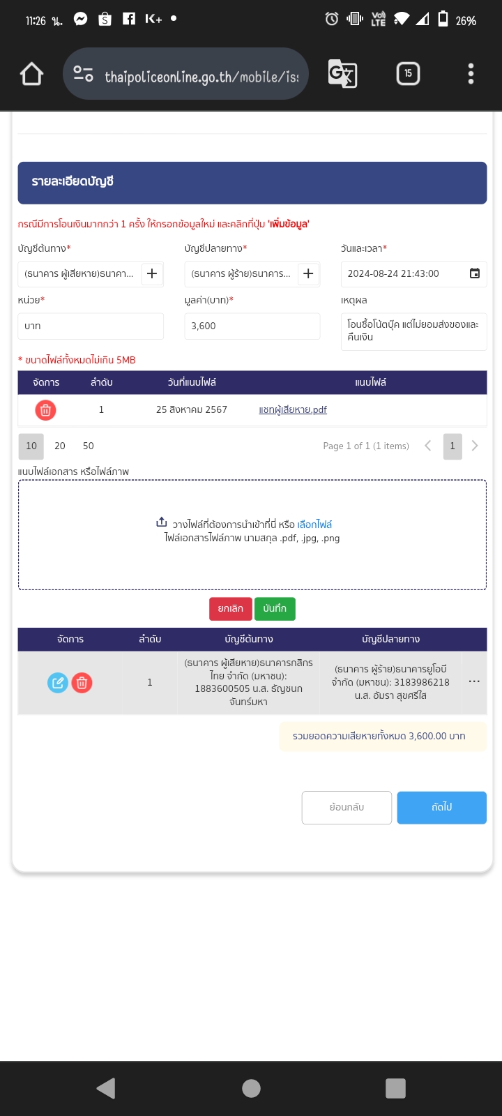 แจ้งความออนไลน์ แต่กดถัดไปไม่ได้