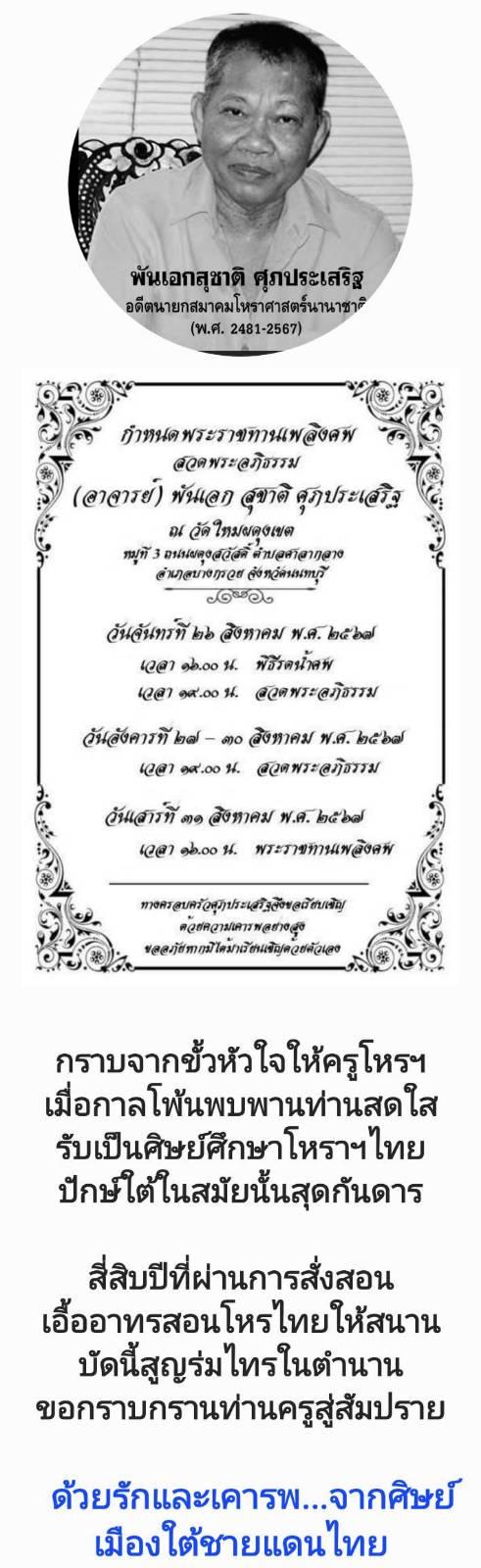 อาลัยโหราจารย์ พ.อ.สุชาติ ศุภประเสริฐ