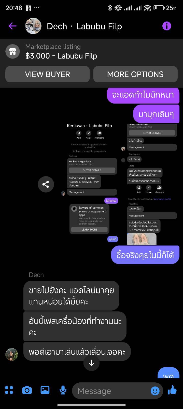 ผมลงขายของใน Facebook marketplace ละงงมากมีแต่คนมาทักจะคุยแอดไลน์อยากเดียว มาแพทเทิร์นเดิมๆ ผมอยากรู้ว่าแอดไปทำไม มิจฉาชีพใช่ไหมครับแบบนี้ ผมไม่เคยปฝแอดไปคุยเลย ดูแล้วไม่น่าไว้ใจครับ