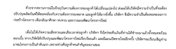 ผ่านไปจะ2ปี โทรมาแจ้งว่าต้องปรับปรุงโครงการ จะวางขายใหม่ ให้ไปรับเงินคืน