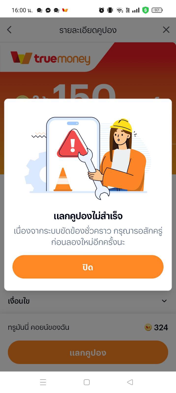 แลก Coins True money Wallet ไม่ได้