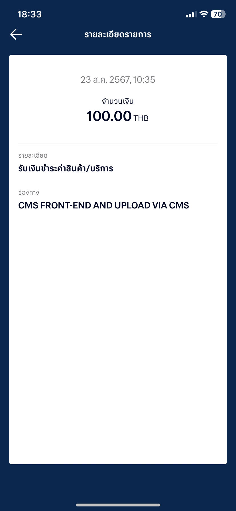 ธ.กรุงเทพ BBL ของเรา มีเงินโอนเข้าแจ้งว่า รับชำระค่าสินค้า/บริการ จาก CMS FRONT-END AND UPLOAD VIA CMS