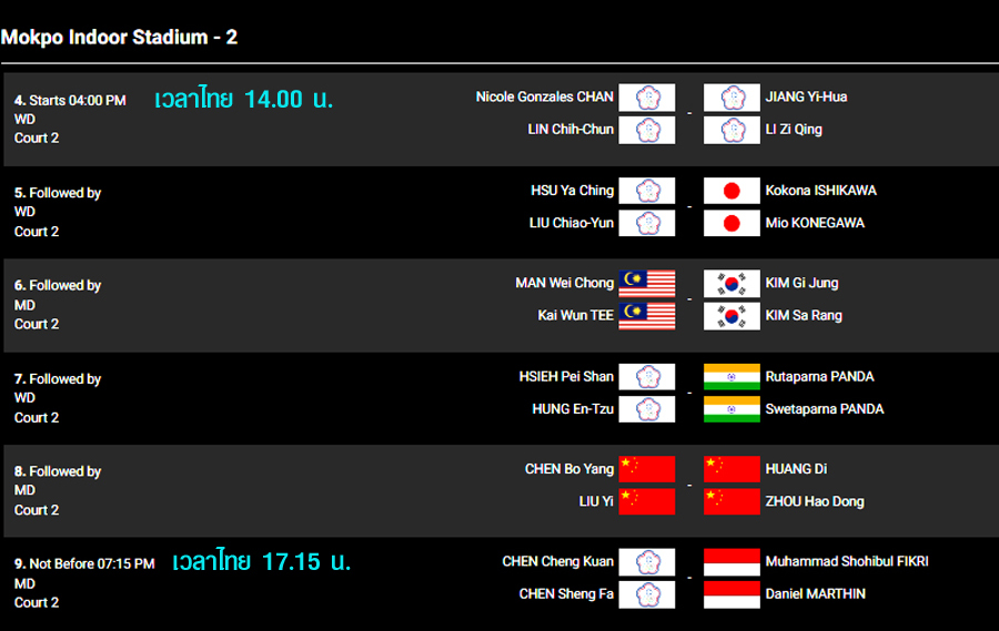 • Youtube BWF TV : https://www.youtube.com/@bwftv/streams (คู่แรก 10.00 น.)