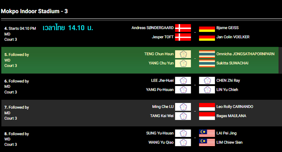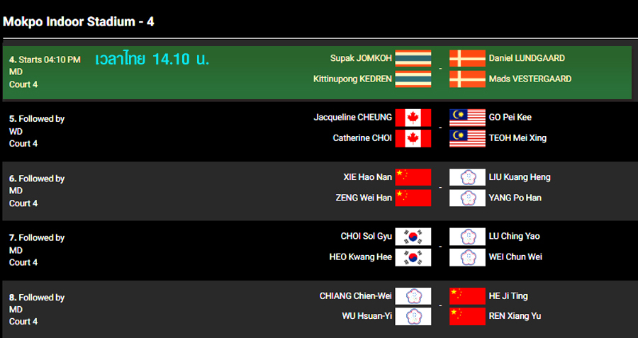 แข่งคู่ที่ 4 เวลา 14.10 น. (คอร์ท 4 มีถ่ายทอดสด)
