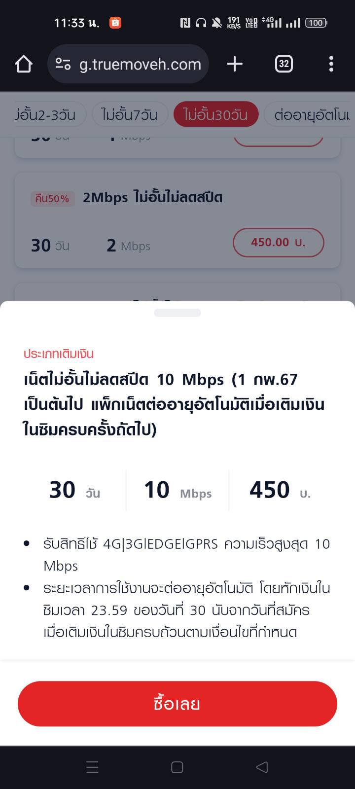 เน็ตทรูไม่ตัดชำแพ็คเกจ