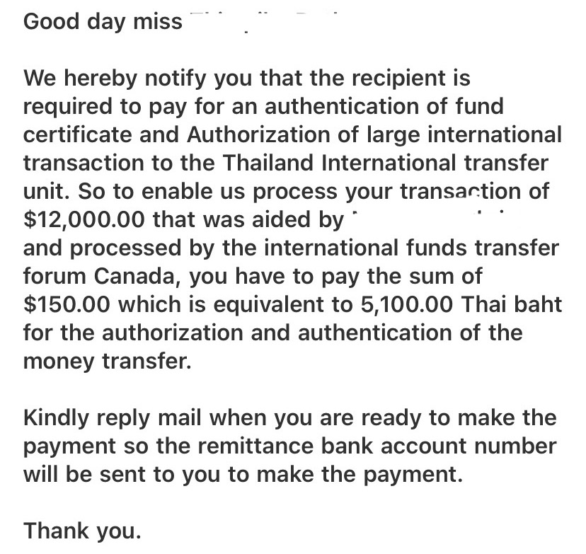 ตอนนี้กำลังเจอปัญหาเรื่องนี้อยู่ค่ะขอคนรู้บอกบุญทีคะว่าโดนหลอกหรือเปล่า ช่วยทีค่ะเขาโอนมาจากแคนาดาค่ะ