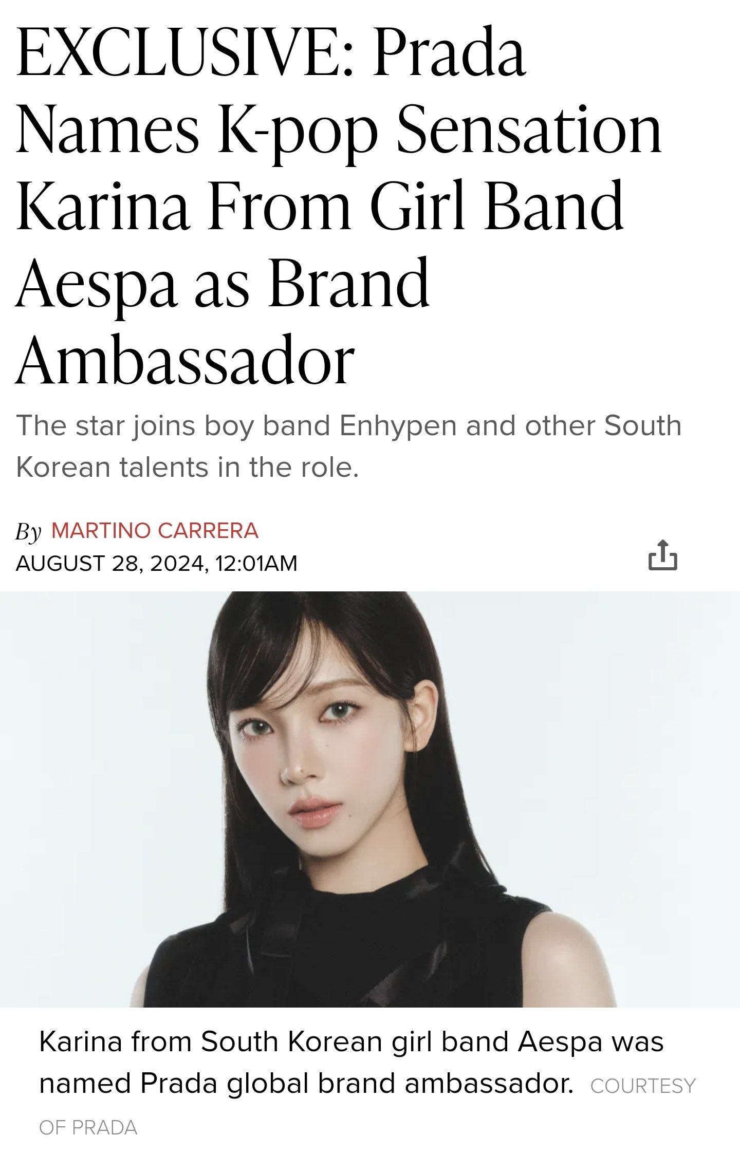 คาริน่า aespa ถูกแต่งตั้งให้เป็น Global Brand Ambassador ให้กับแบรนด์ PRADA
